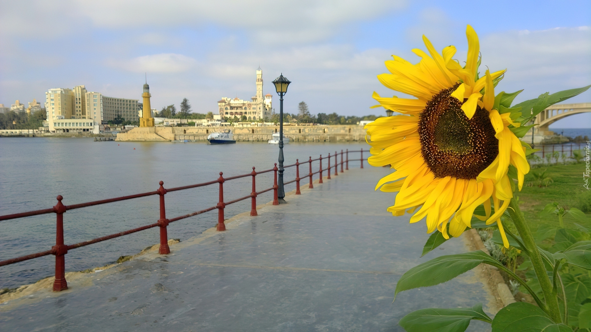 Edytor tapety: Słonecznik, Droga, Rzeka