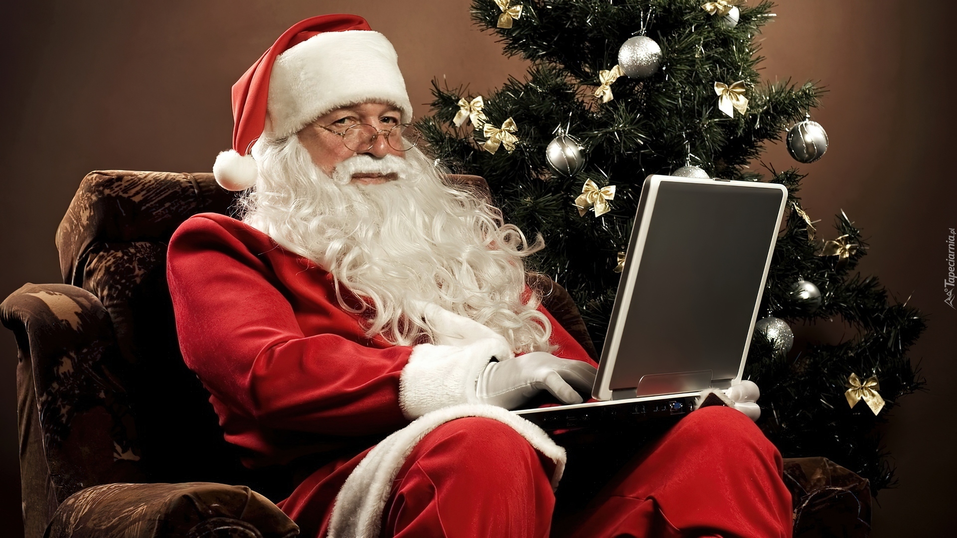 Edytor tapety: Choinka, Mikołaj, Laptop