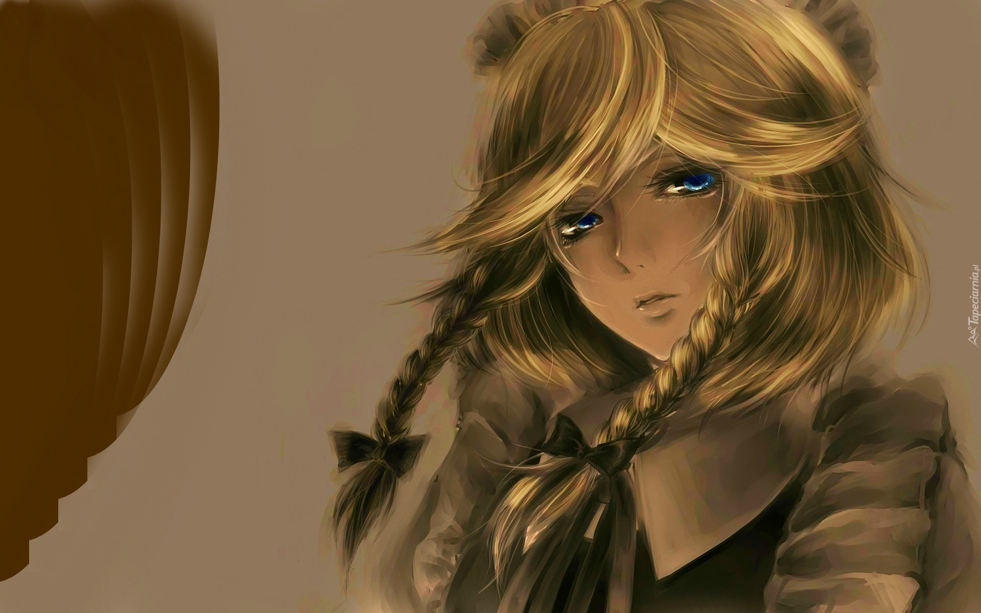 Edytor tapety: Dziewczyna, Warkocze, Niebieskie, Oczy