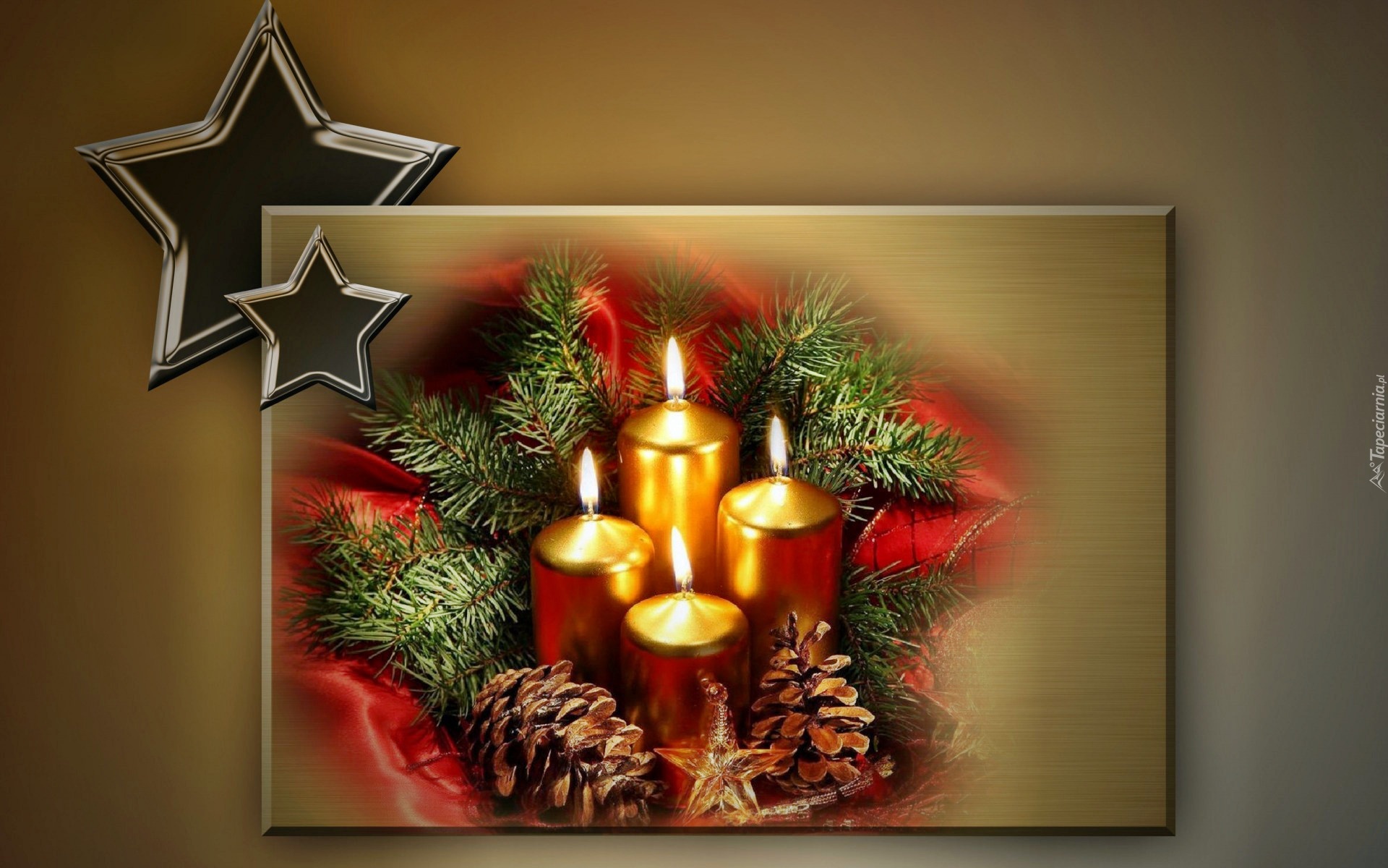 Edytor tapety: Gwiazdki, Złote, Świeczki, Świąteczna, Dekoracja