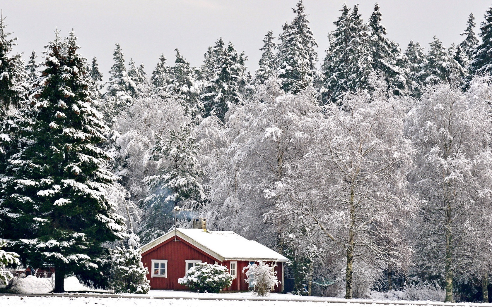 Edytor tapety: Las, Domek, Drzewa, Zima