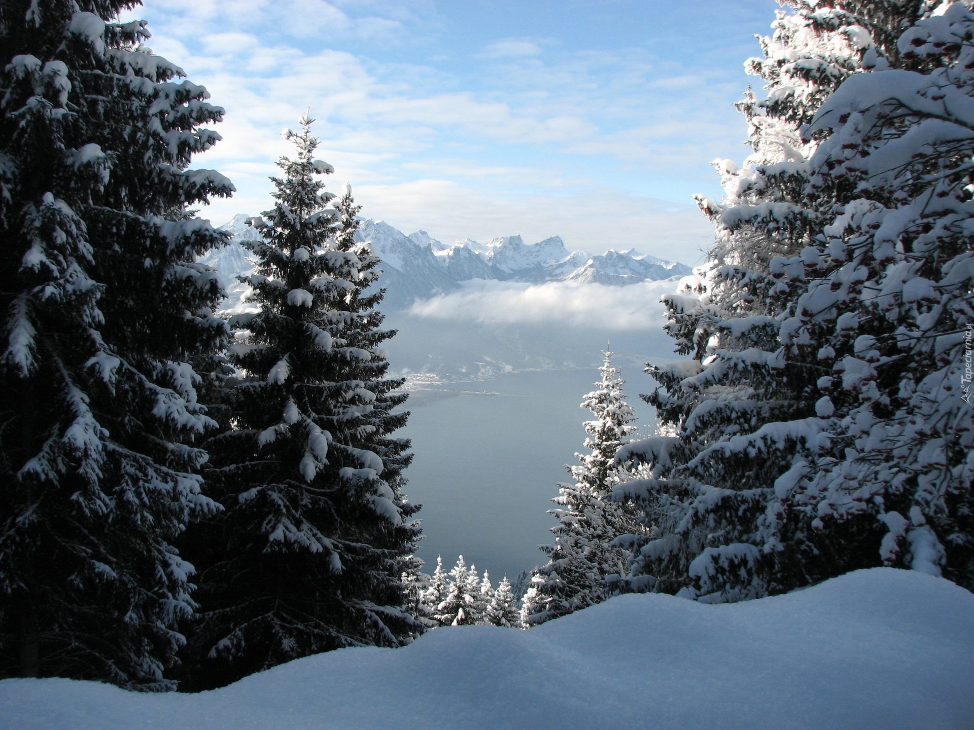 Edytor tapety: Góry, Rzeka, Las, Zima