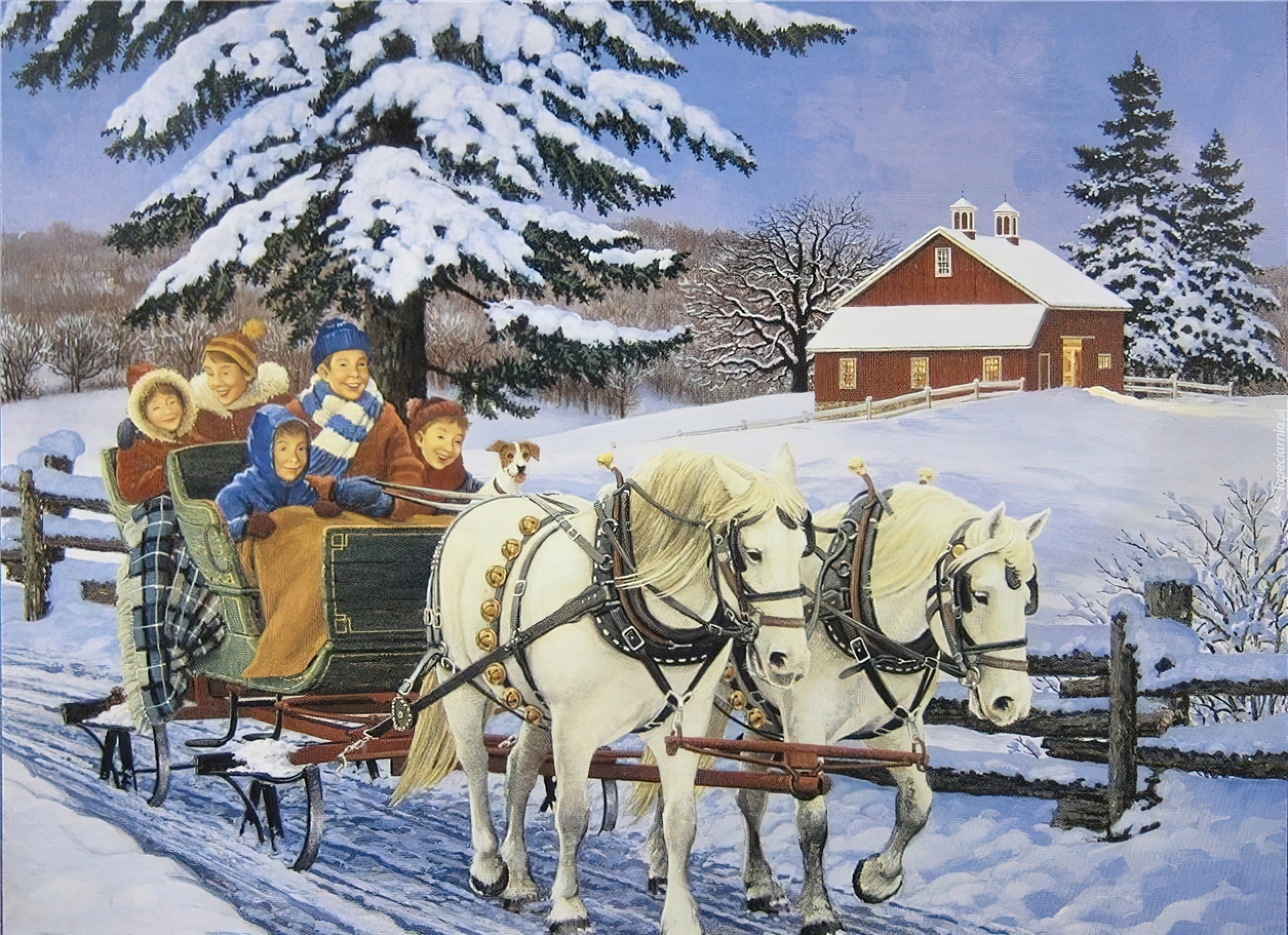 Edytor tapety: Zima, Sanie, Śnieg, Malarstwo