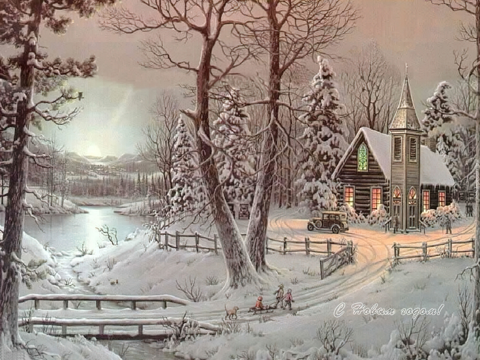 Edytor tapety: Zima, Widoczek, Kościół, Malarstwo