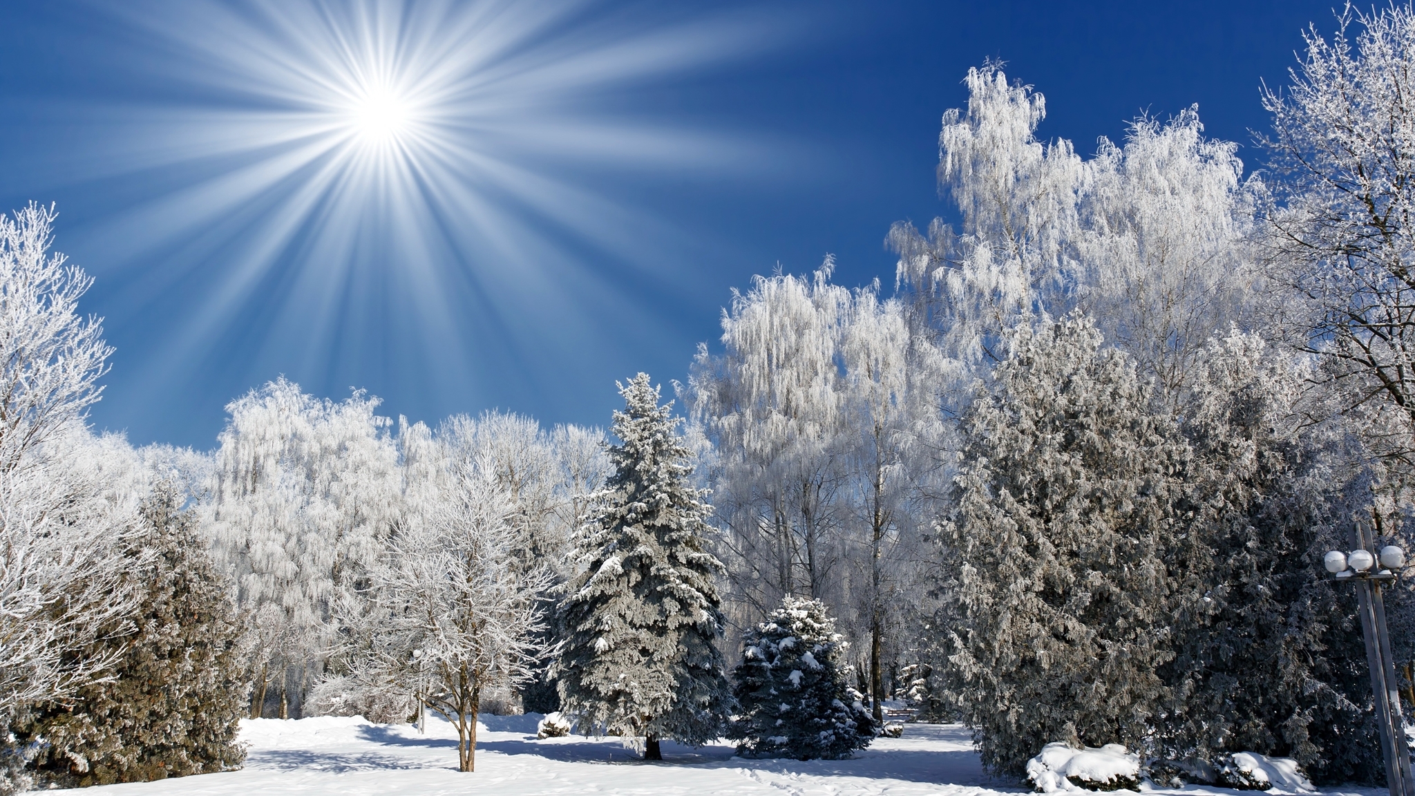 Edytor tapety: Park, Drzewa, Promienie, Słońca, Zima