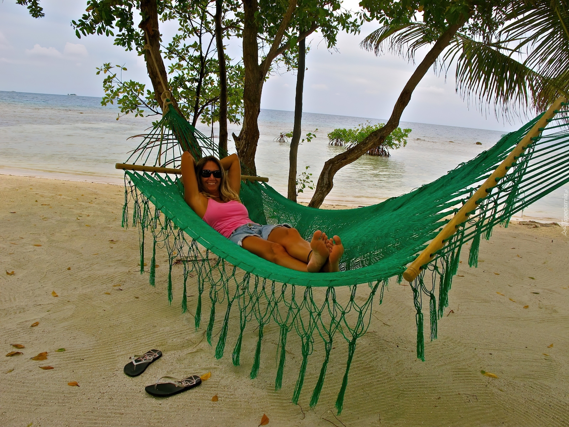 Edytor tapety: Kobieta, Hamak, Plaża, Morze