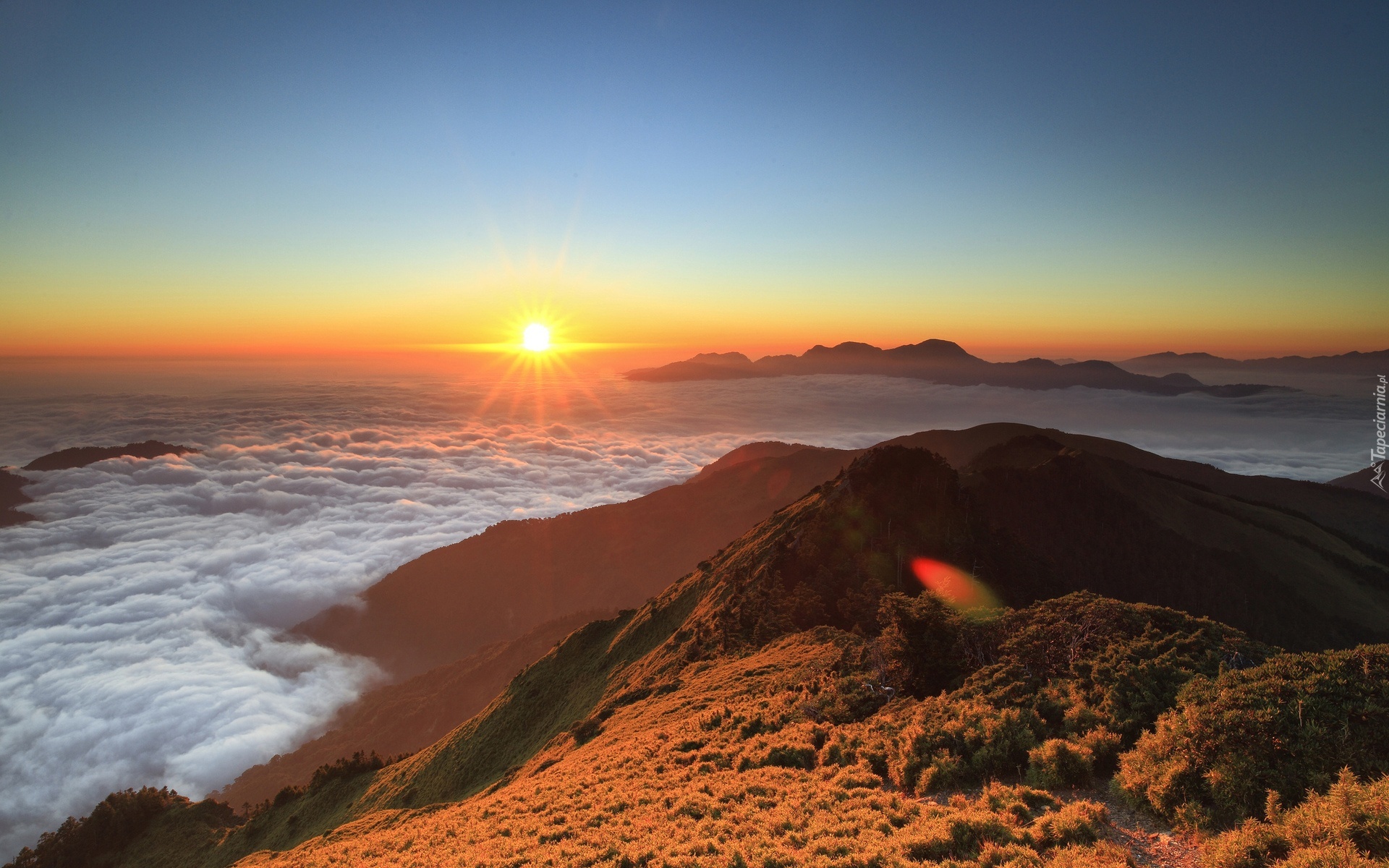 Edytor tapety: Góry, Chmury, Promienie, Słońca
