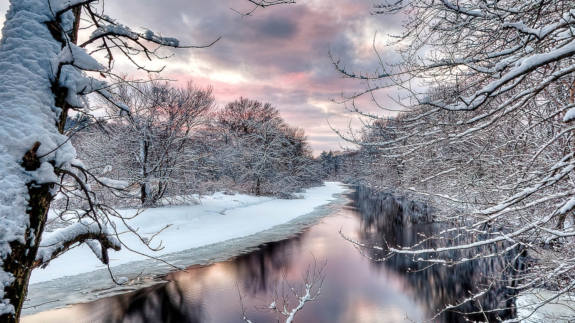 Edytor tapety: Rzeki, Ośnieżone, Drzewa