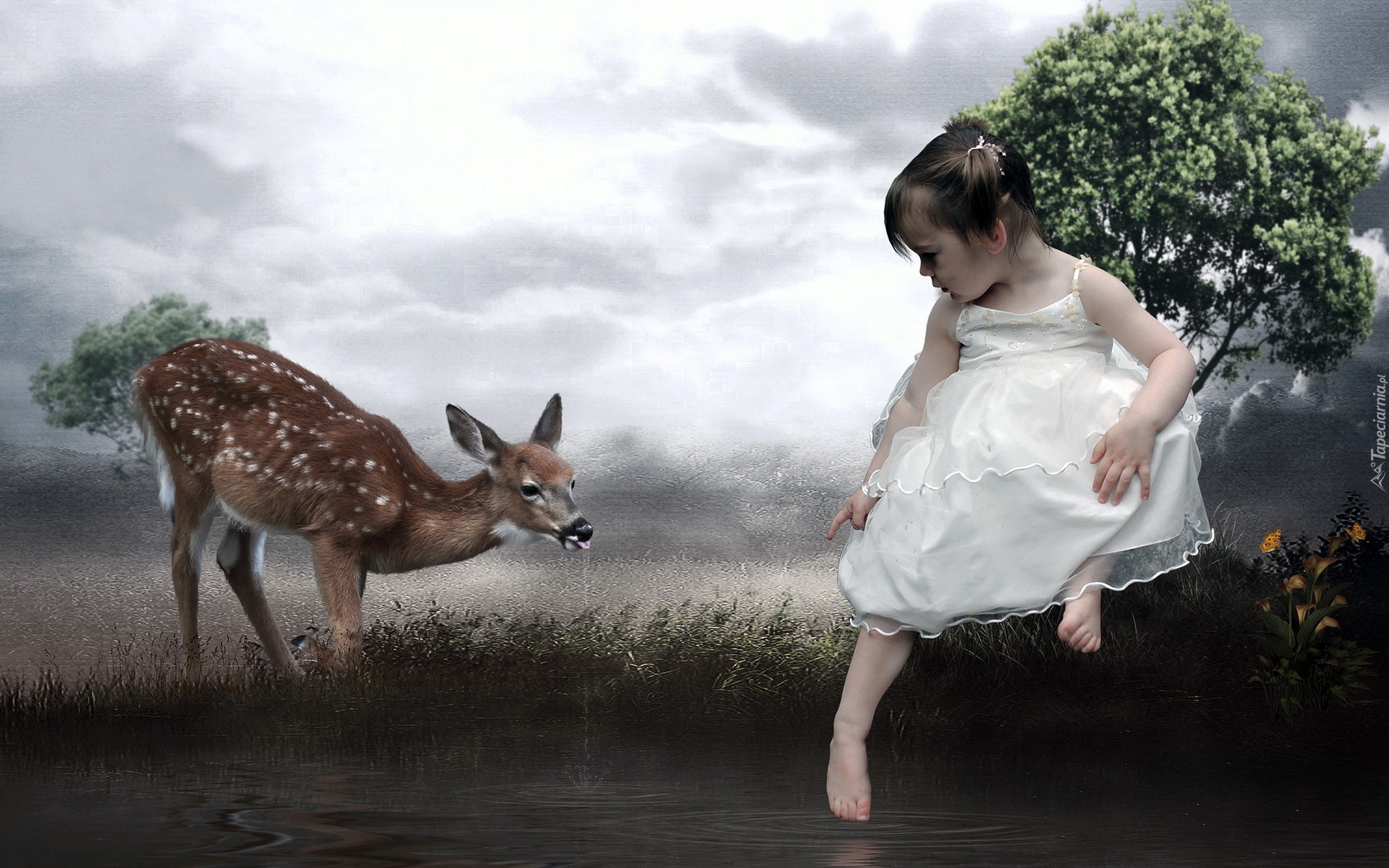 Edytor tapety: Mała, Dziewczynka, Sarenka