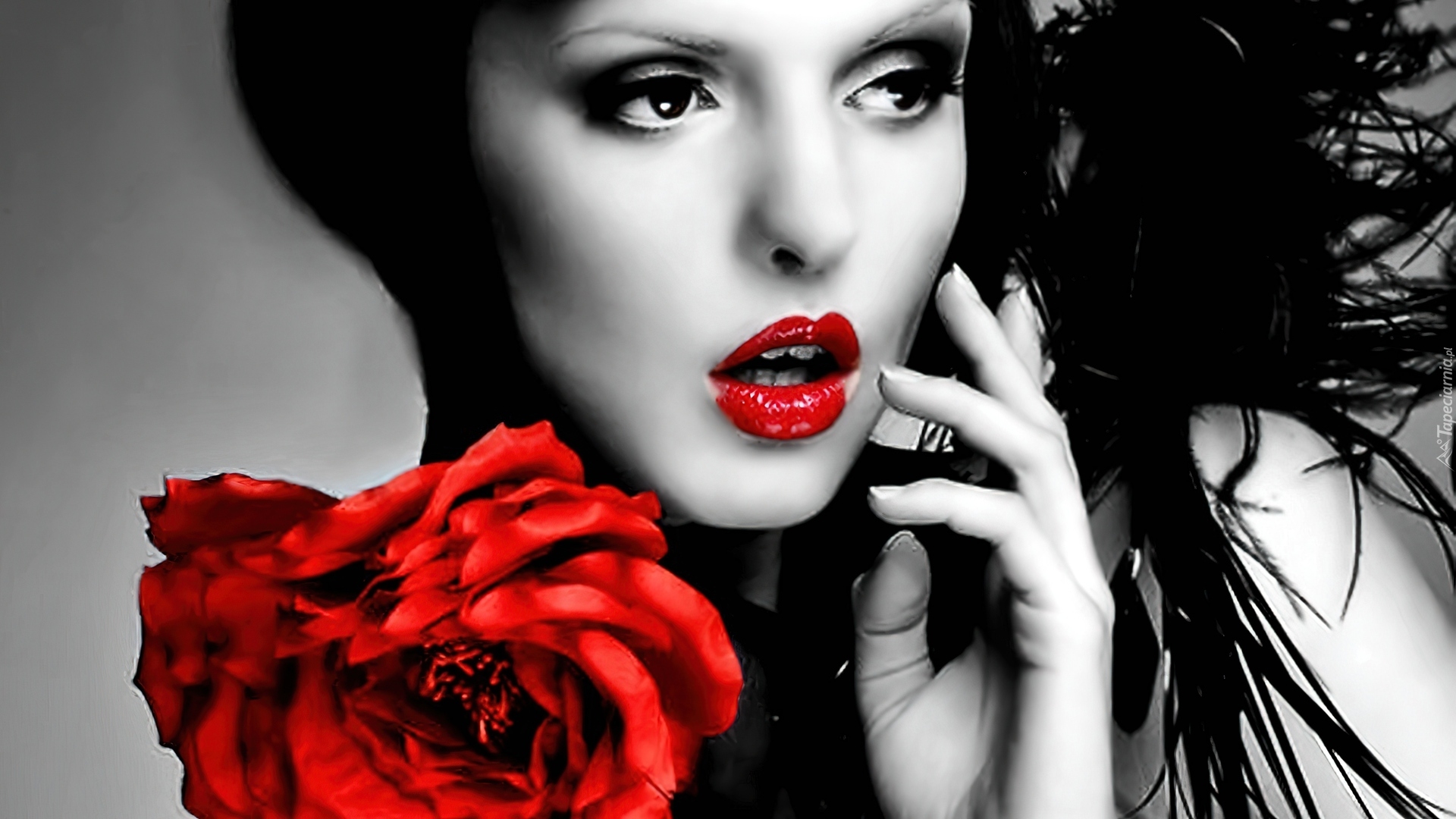 Edytor tapety: Brunetka, Czerwone, Usta, Spojrzenie