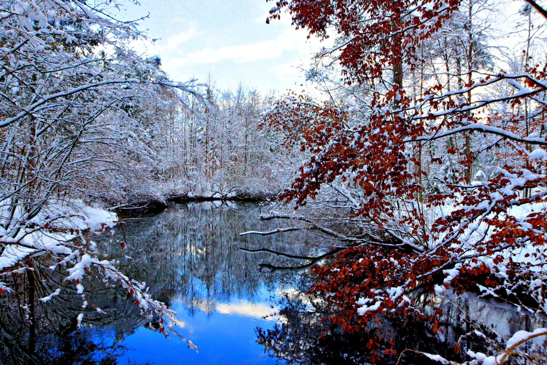 Edytor tapety: Drzewa, Jezioro, Śnieg