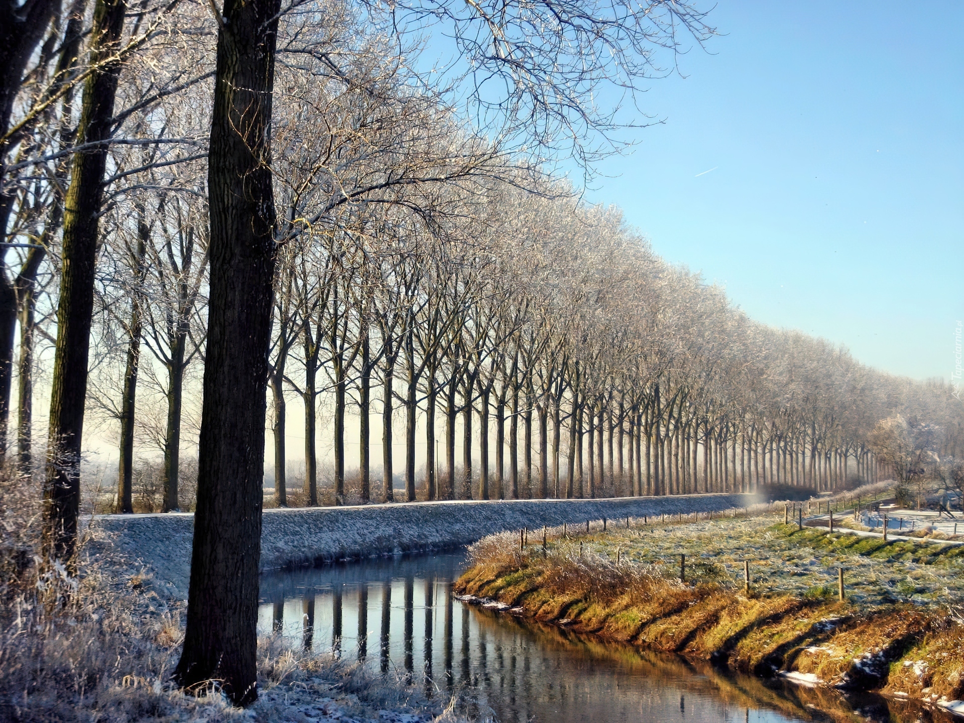 Edytor tapety: Zima, Rzeczka, Szpaler, Drzew