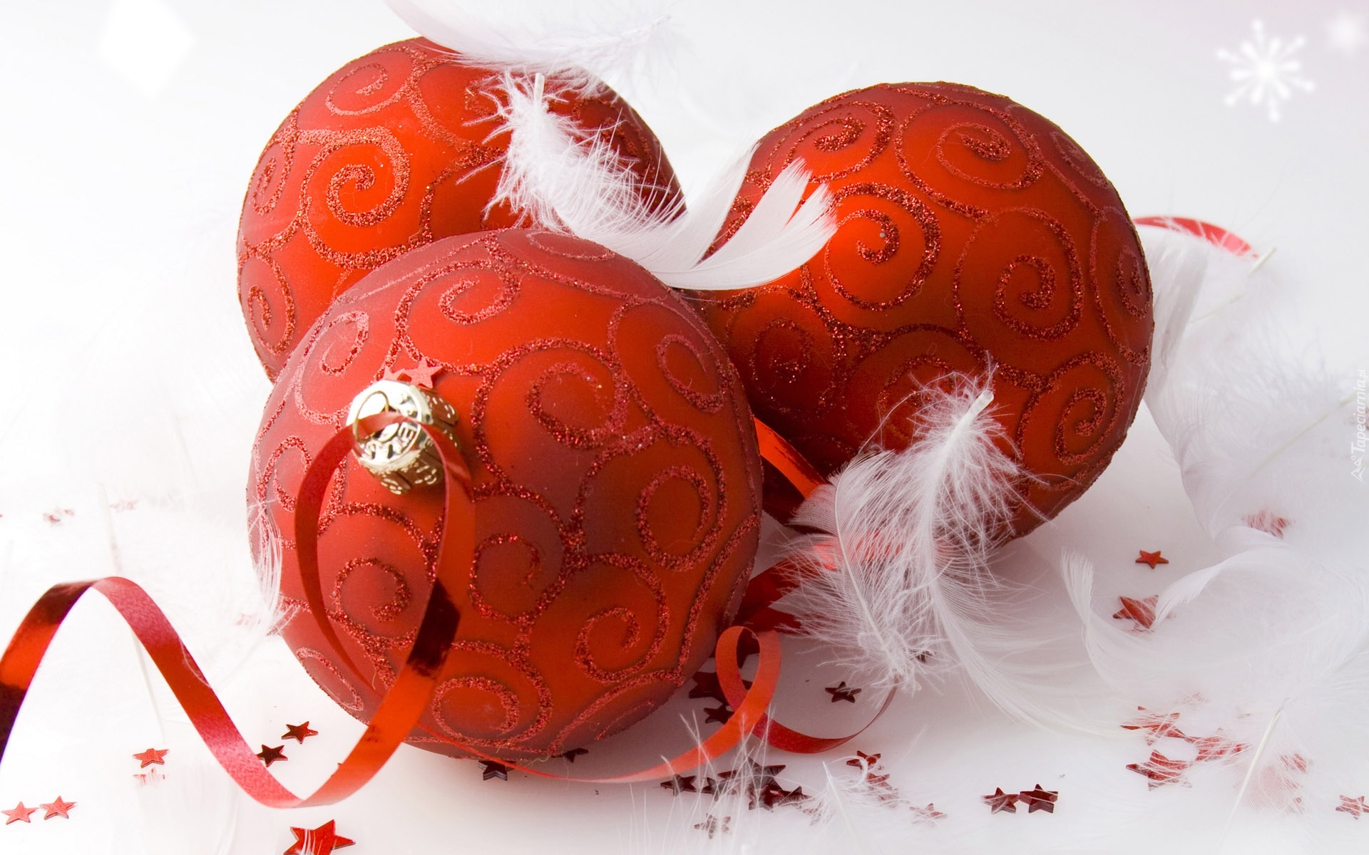 Edytor tapety: Trzy, Bombki, Piórka