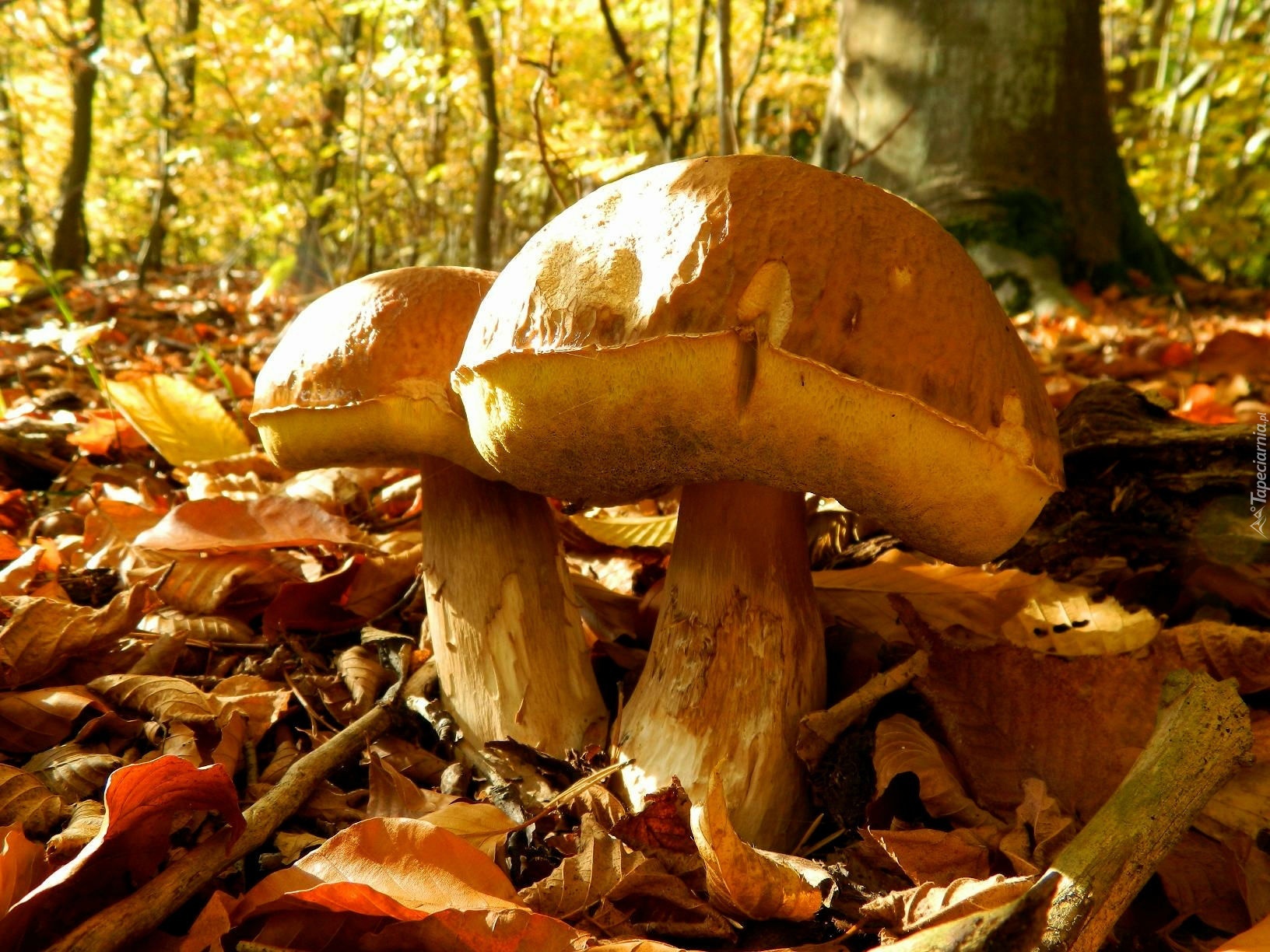 Edytor tapety: Grzyby, Prawdziwki, Drzewa, Liście