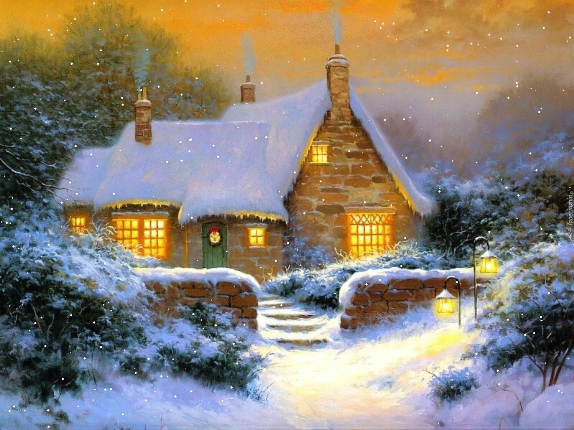 Edytor tapety: Dom, Zimowy, Widoczek, Malarstwo