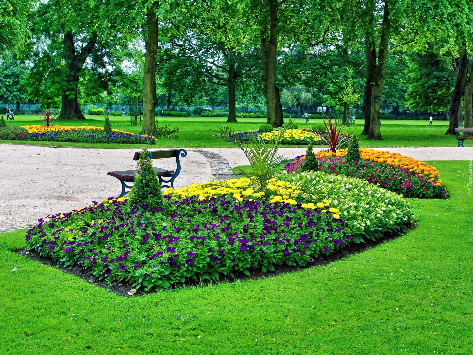 Edytor tapety: Park, Klomby, Alejka, Ławka