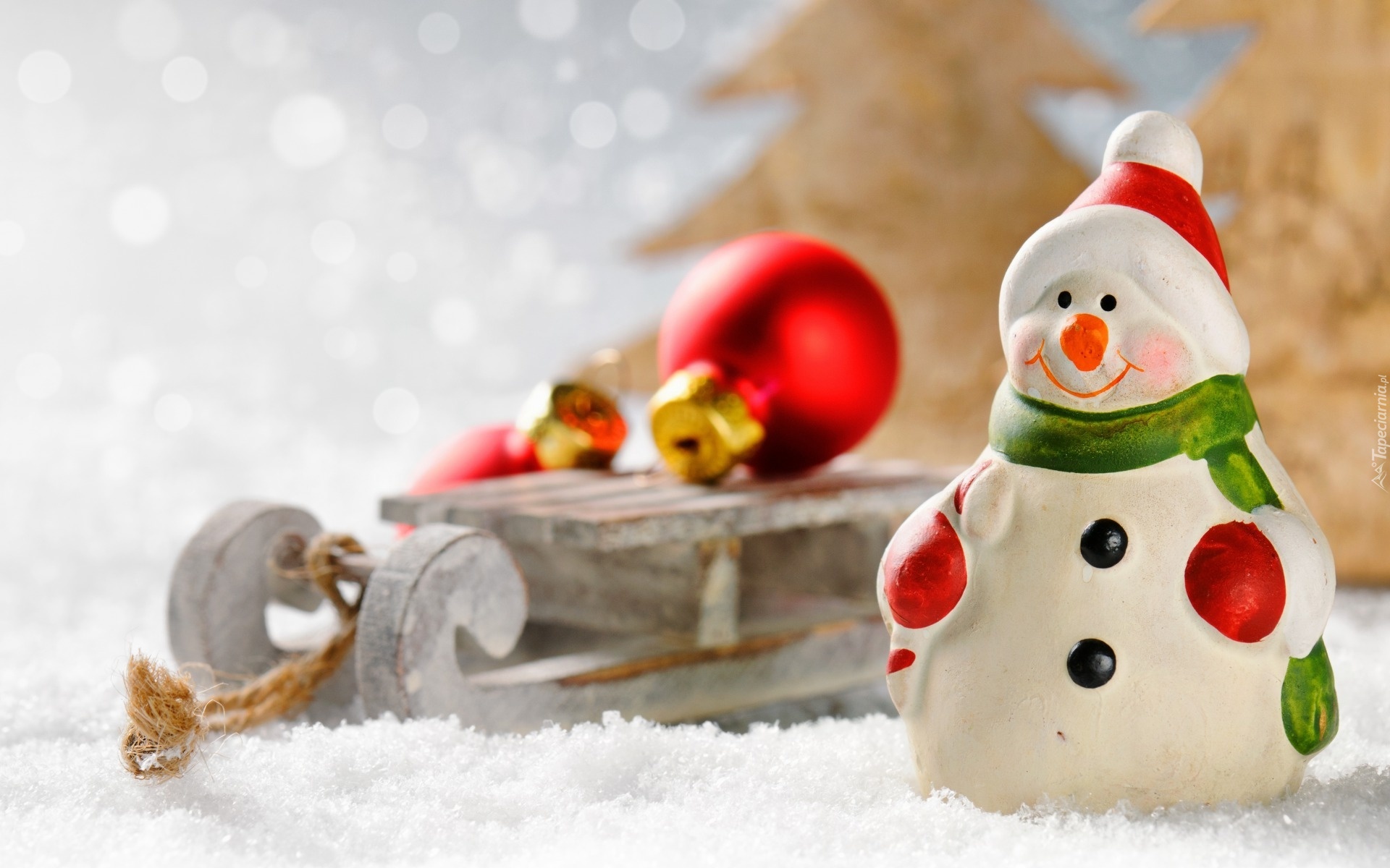 Edytor tapety: Boże Narodzenie, Bałwanek, Sanki, Śnieg, Bombki