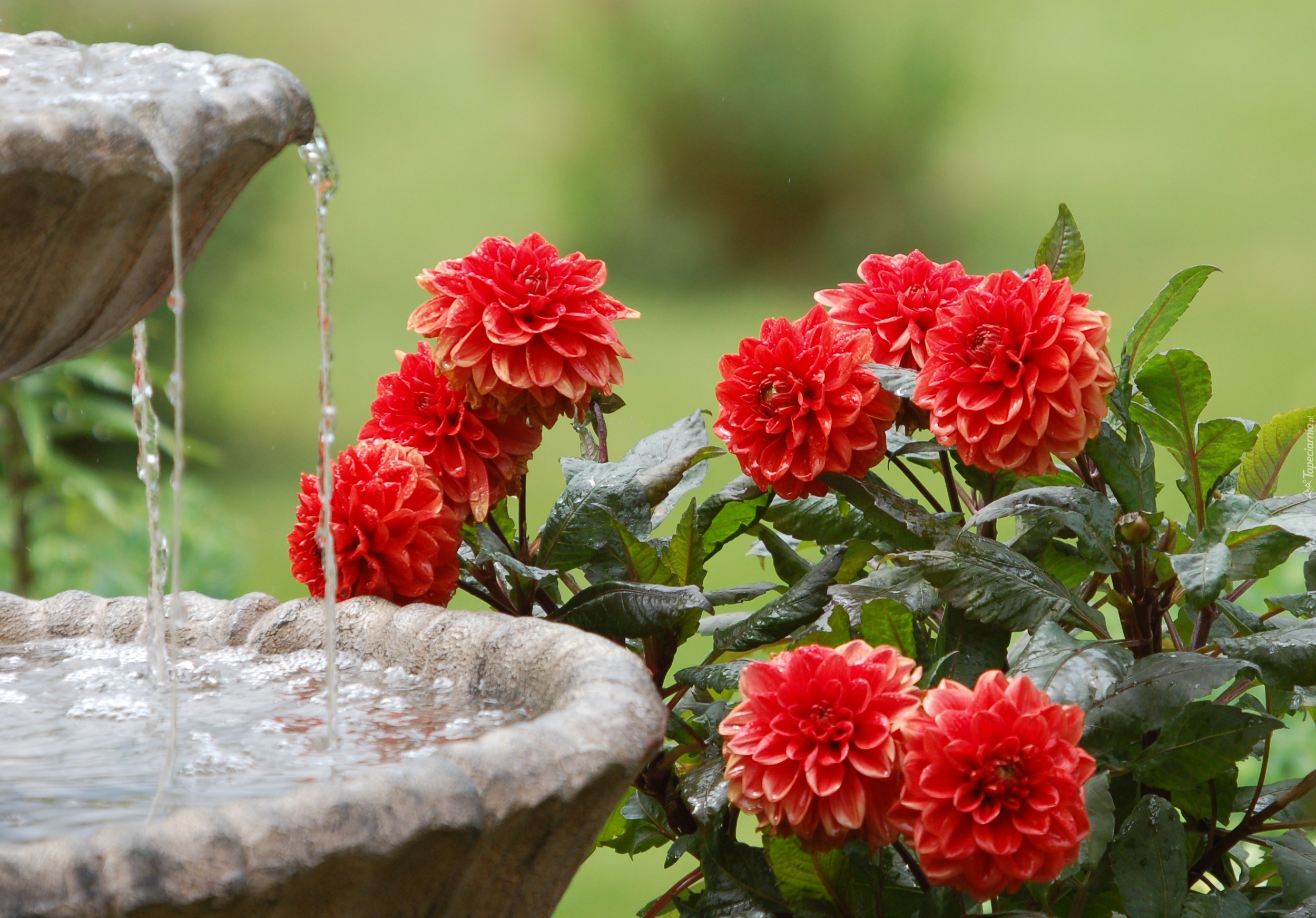 Edytor tapety: Fontanna, Woda, Kwiaty