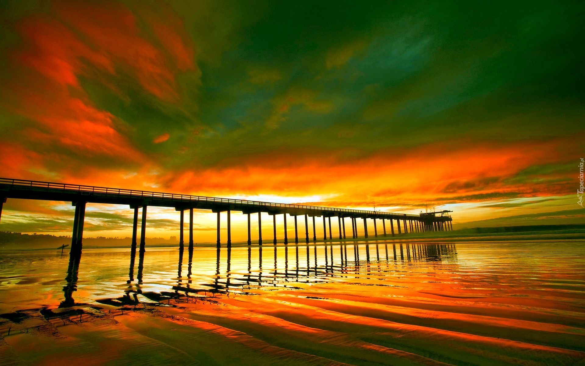 Edytor tapety: Morze, Zachód, Słońca, Molo