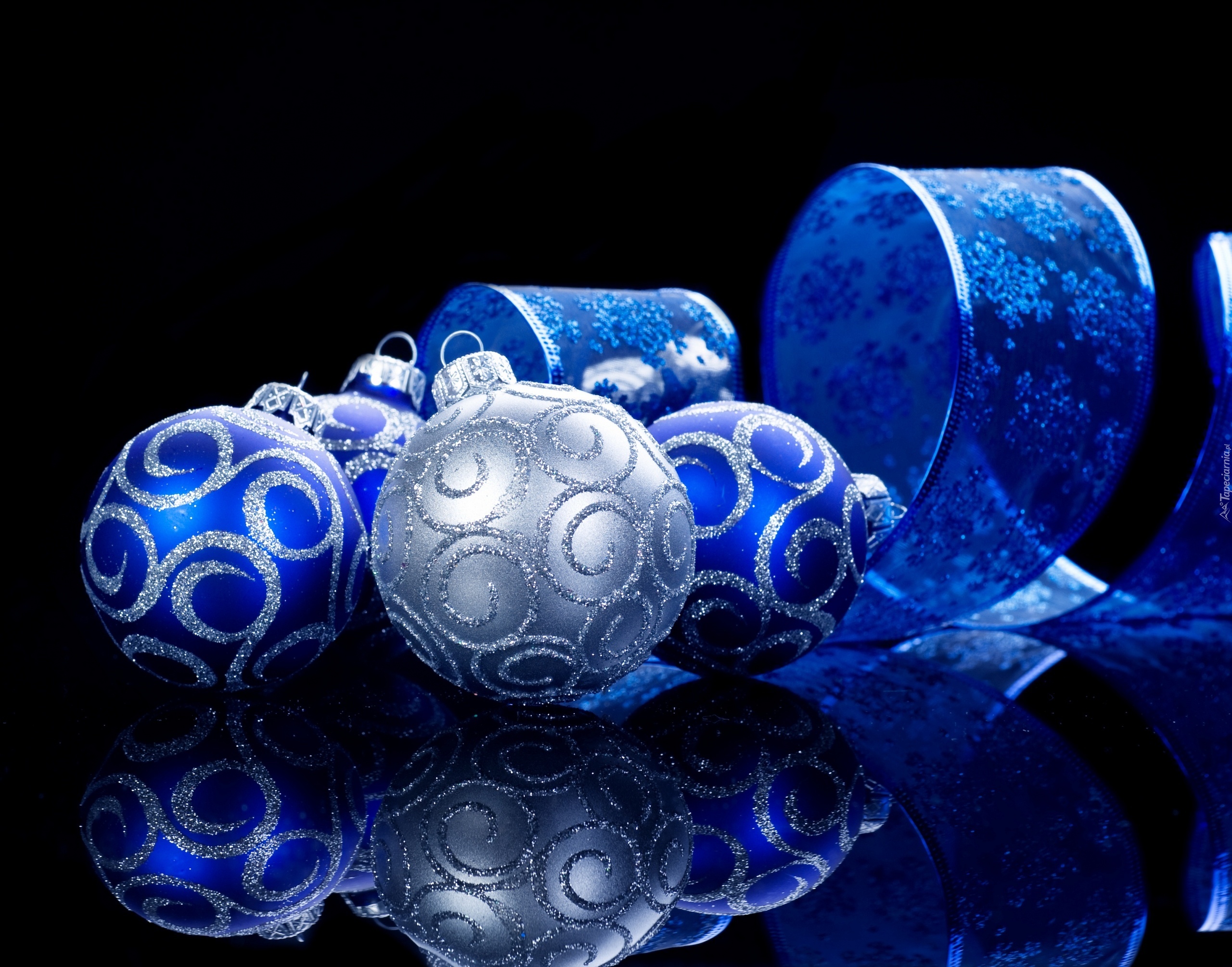 Edytor tapety: Niebieskie, Bombki, Choinkowe, Odbicie