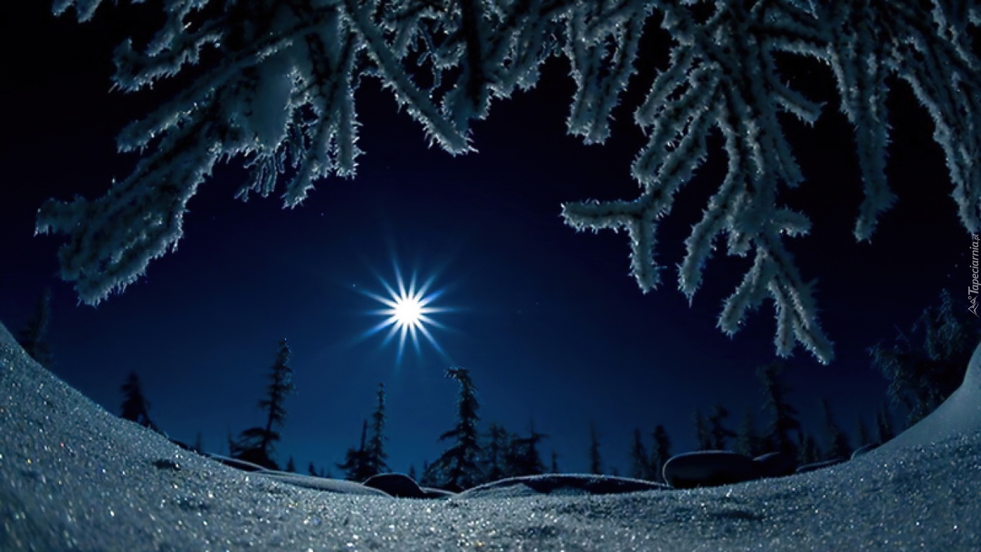 Edytor tapety: Gwiazda, Choinki, Śnieg, Zima