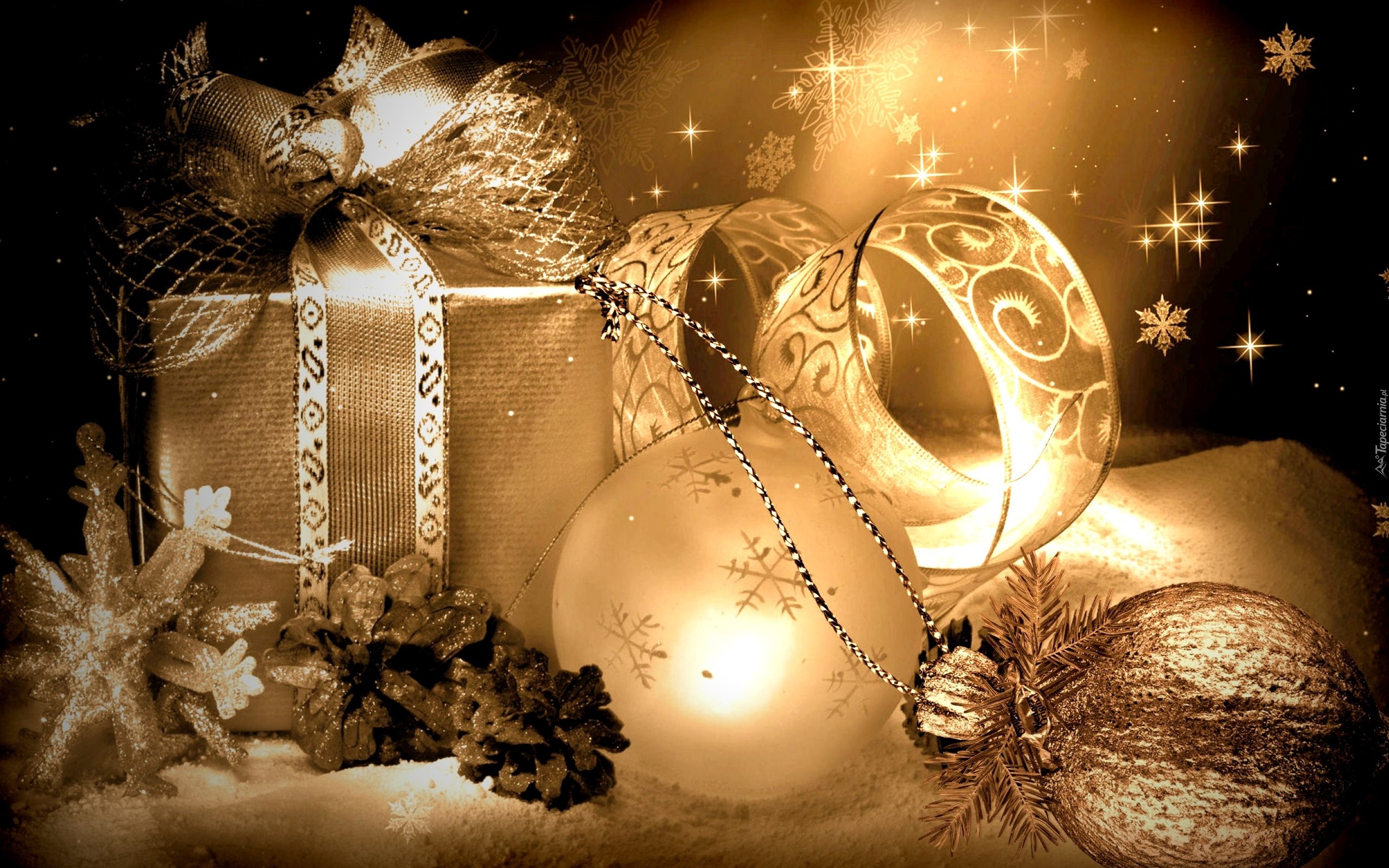 Edytor tapety: Świąteczne, Prezenty, Bombki, Szyszki