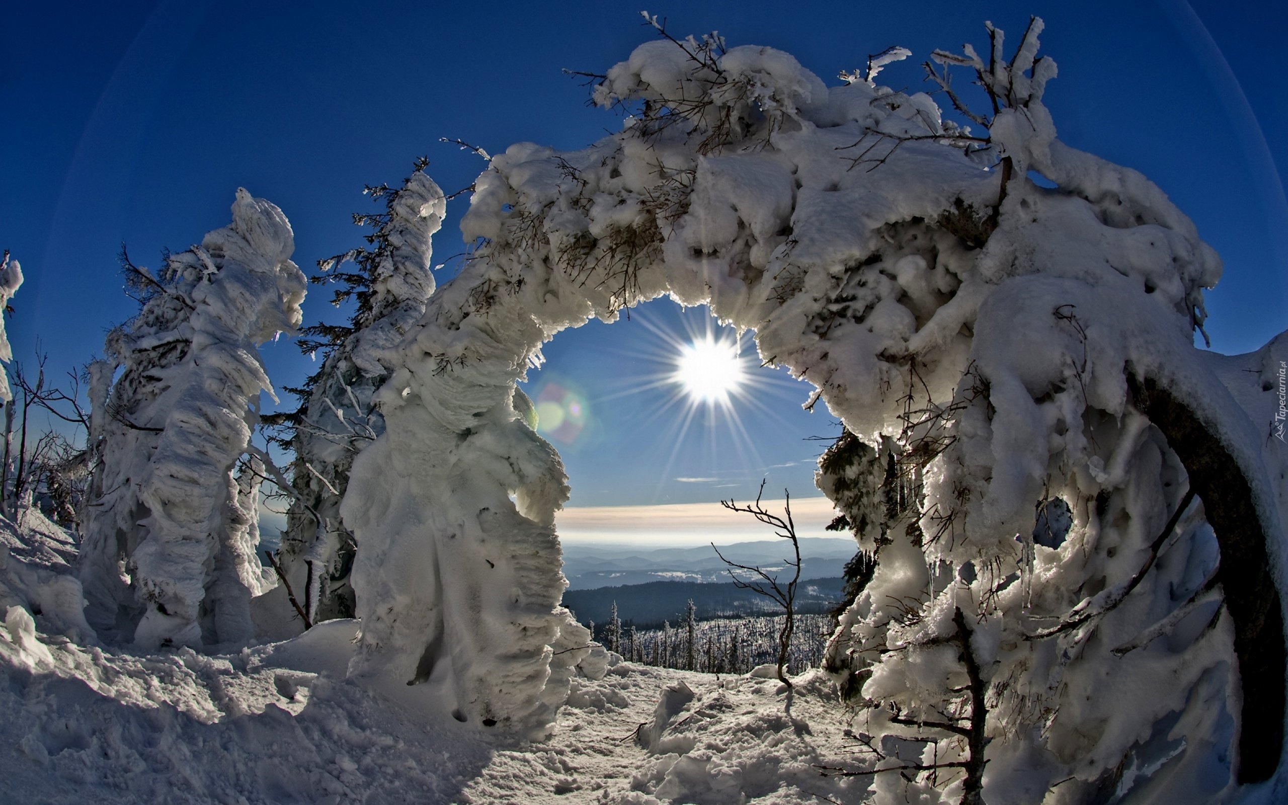 Edytor tapety: Niebo, Słońce, Ośnieżone, Drzewa