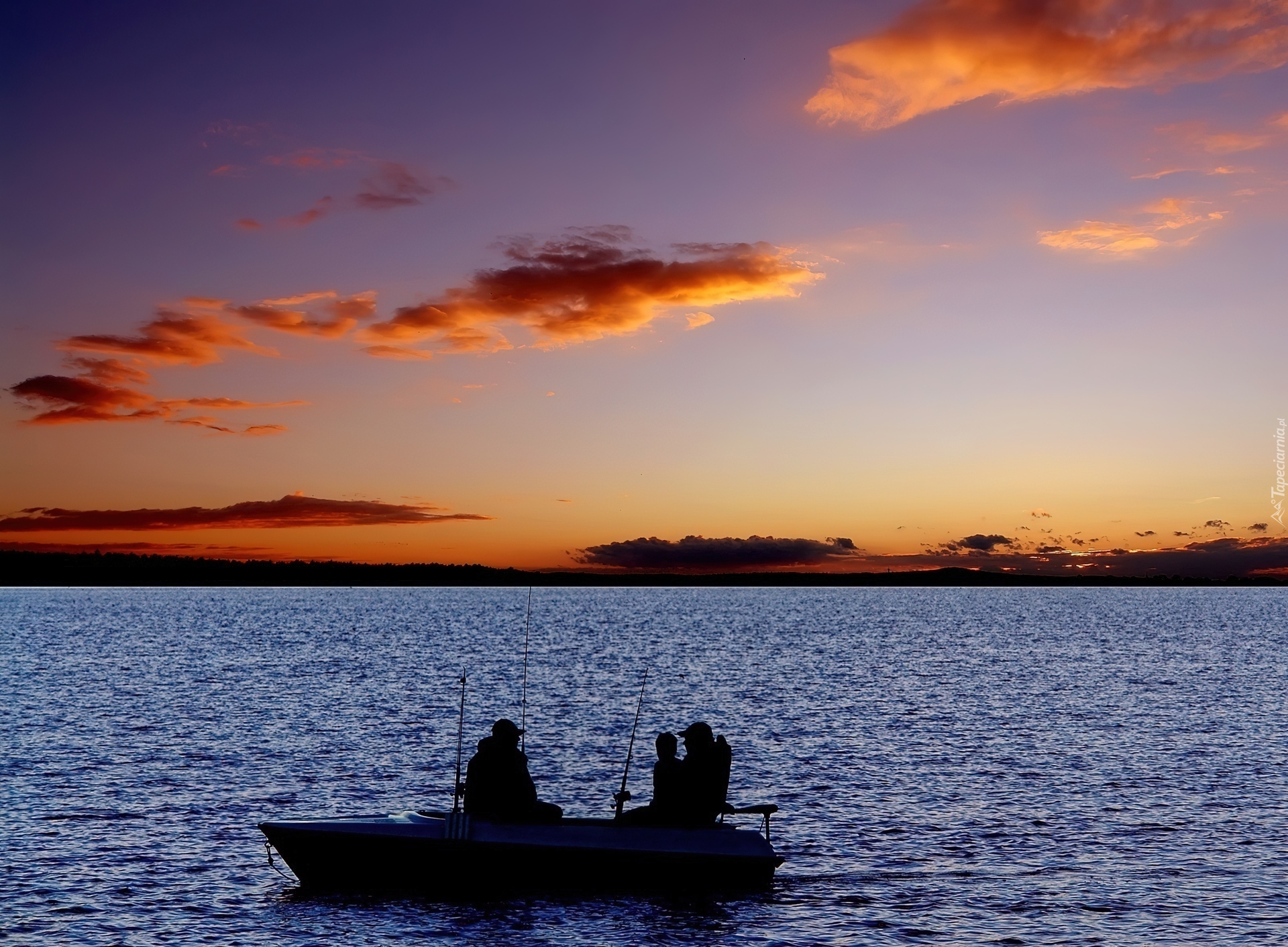 Edytor tapety: Jezioro, Chmury, Wędkarze, Łódka
