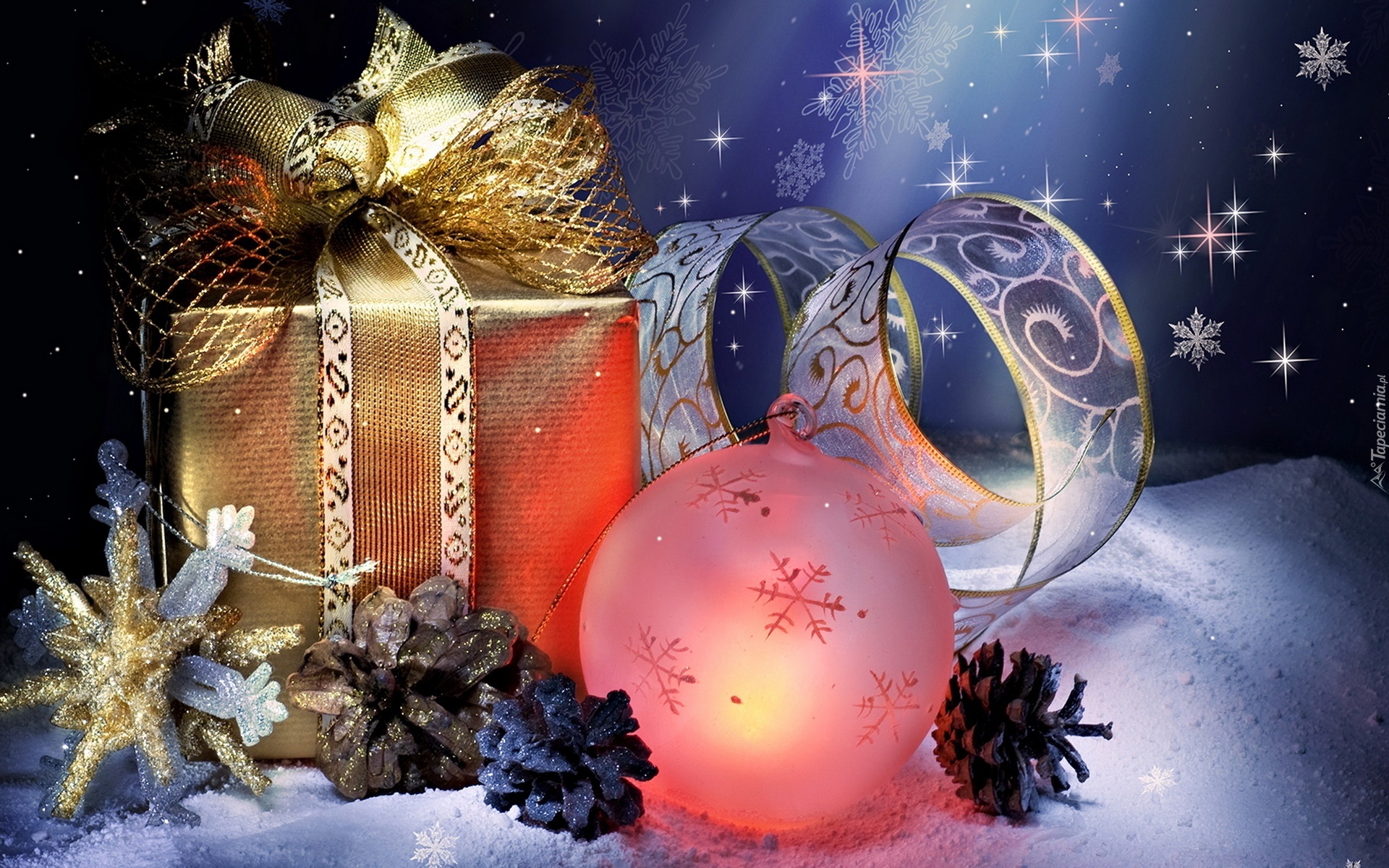 Edytor tapety: Prezent, Bombka, Ozdoby, Świąteczne