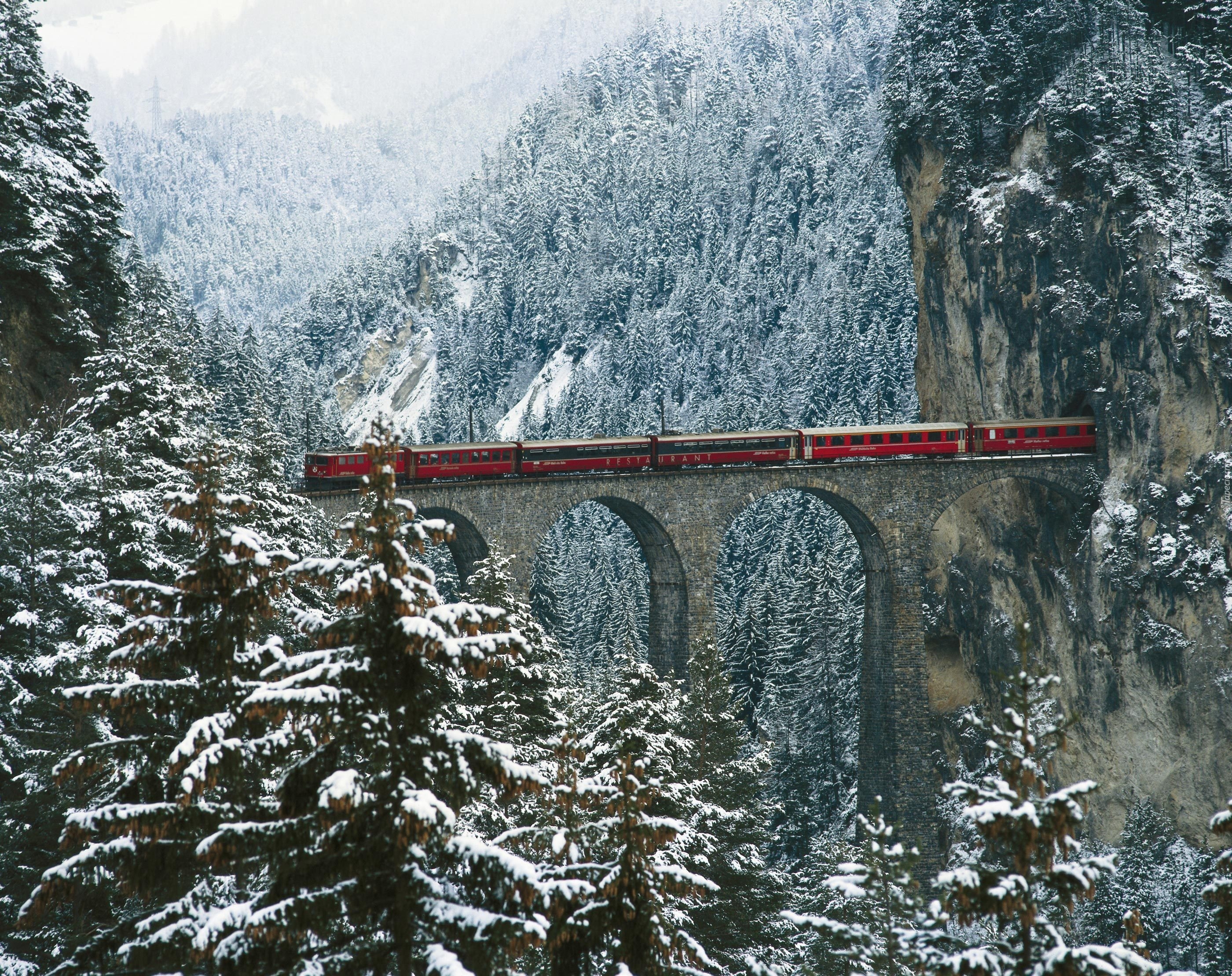 Edytor tapety: Góry, Las, Tunel, Pociąg, Zima