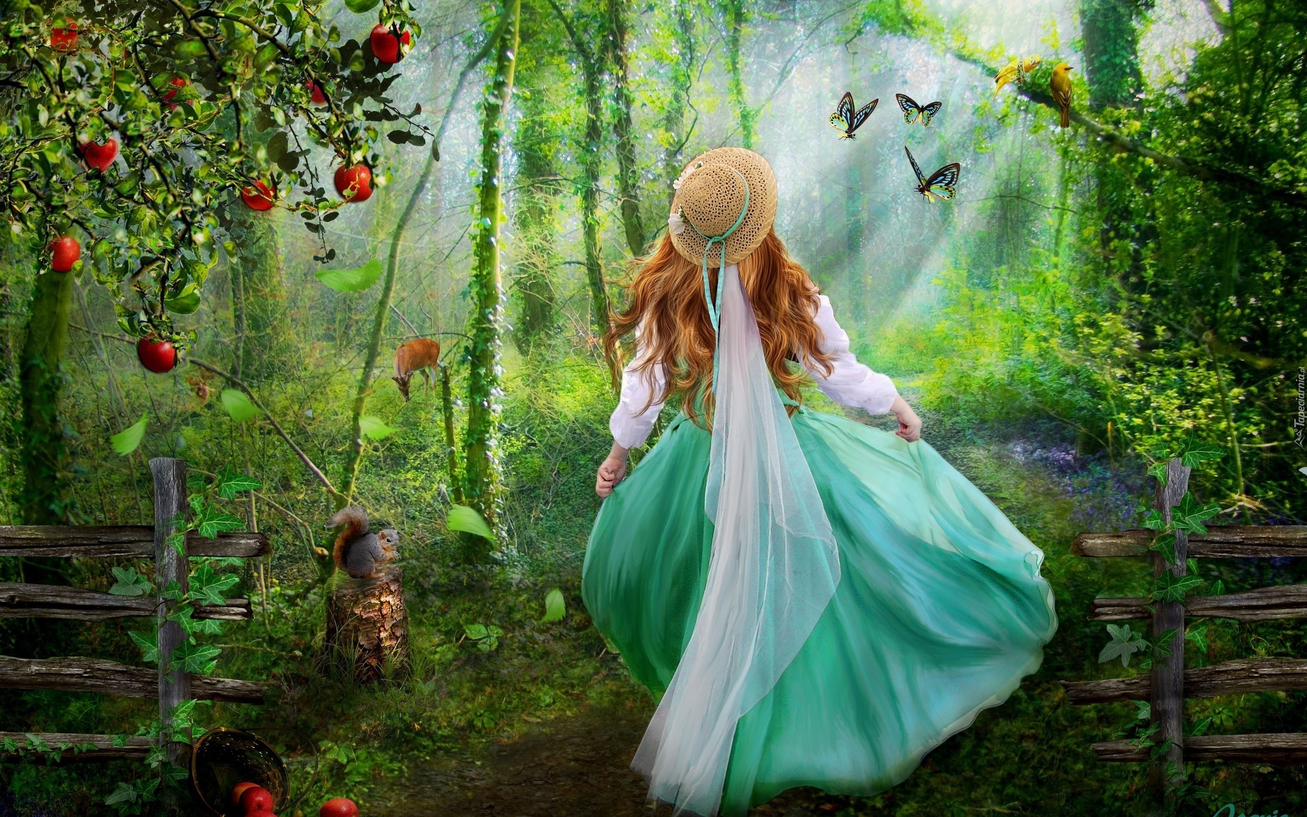Edytor tapety: Dziewczyna, Kapelusz, Las, Promienie