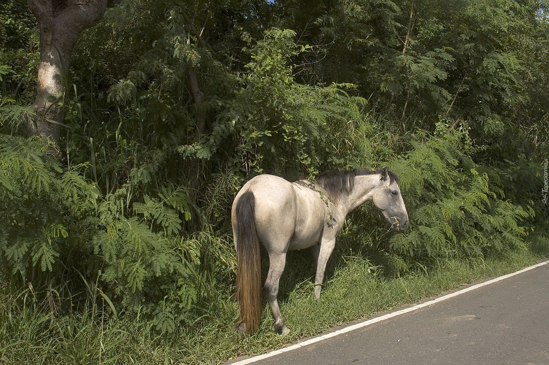 Edytor tapety: Konik, Przy, Drodze, Roślinność
