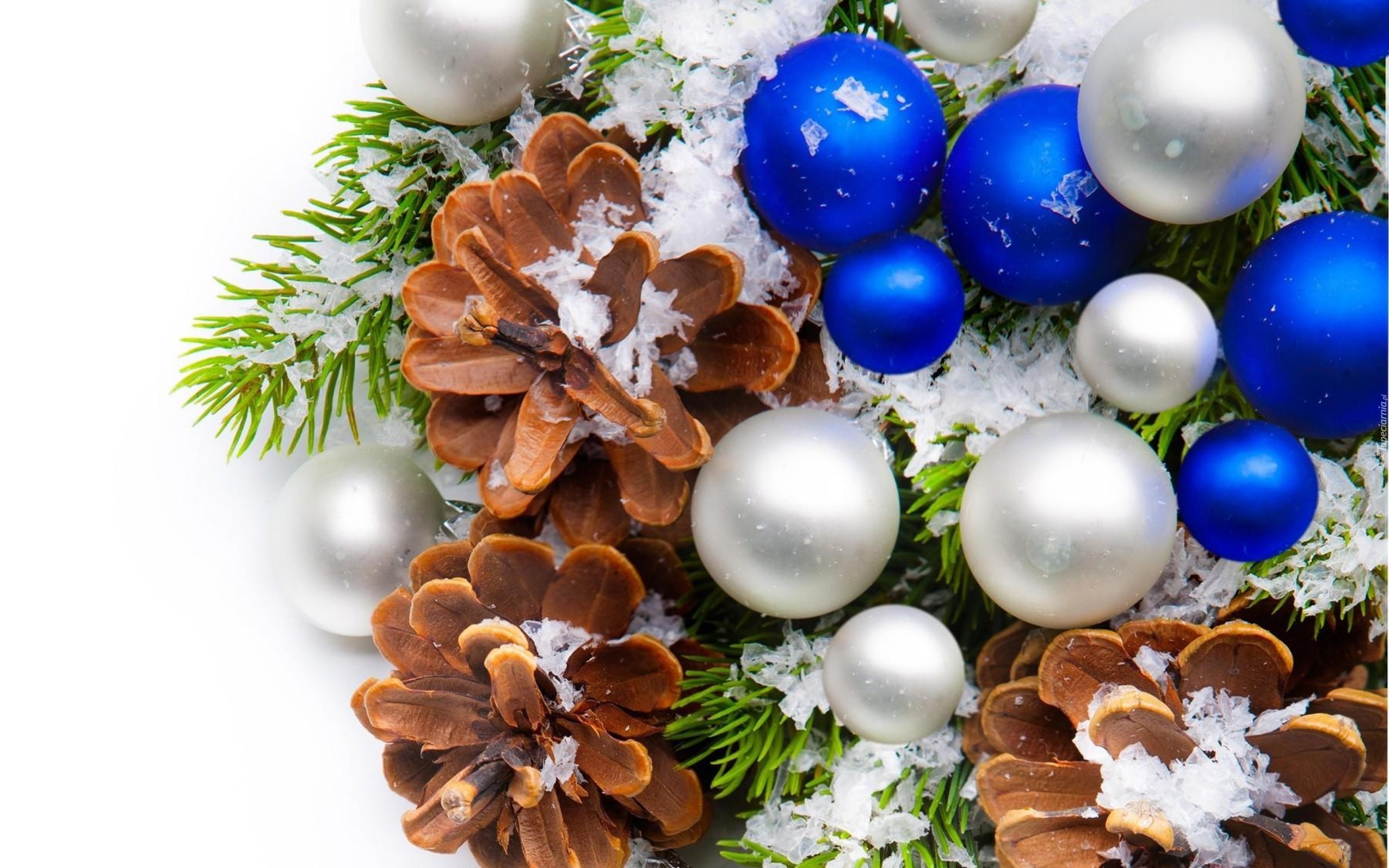 Edytor tapety: Niebieskie, Białe, Bombki, Szyszki