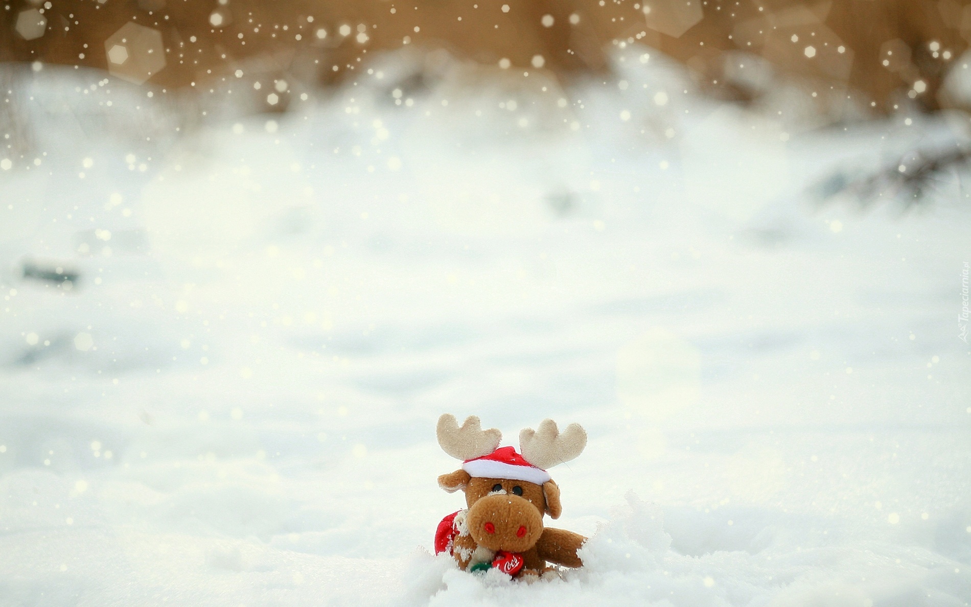 Edytor tapety: Śnieg, Reniferek, Maskotka