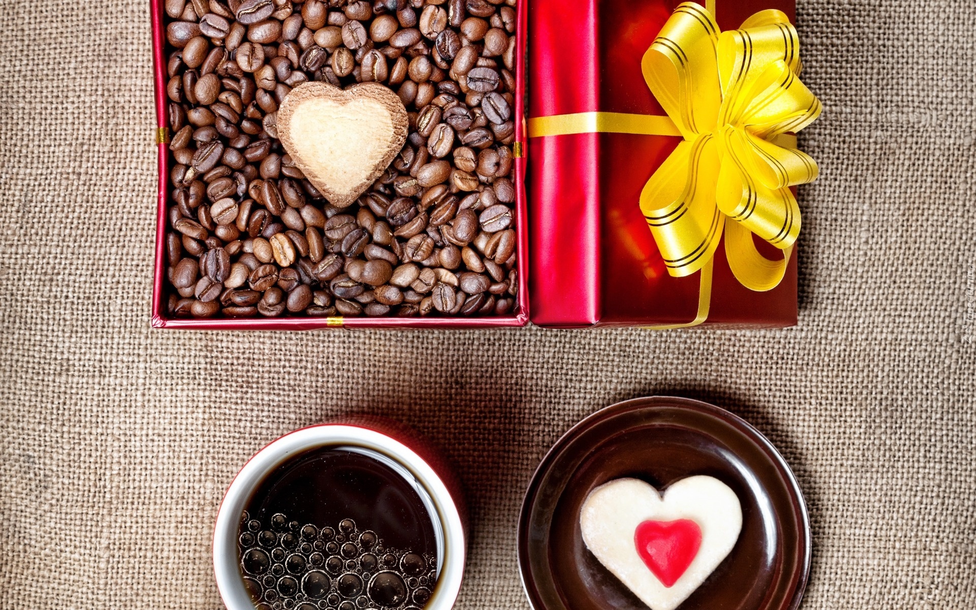 Edytor tapety: Kawa, Ziarna, Pudełko, Serduszko