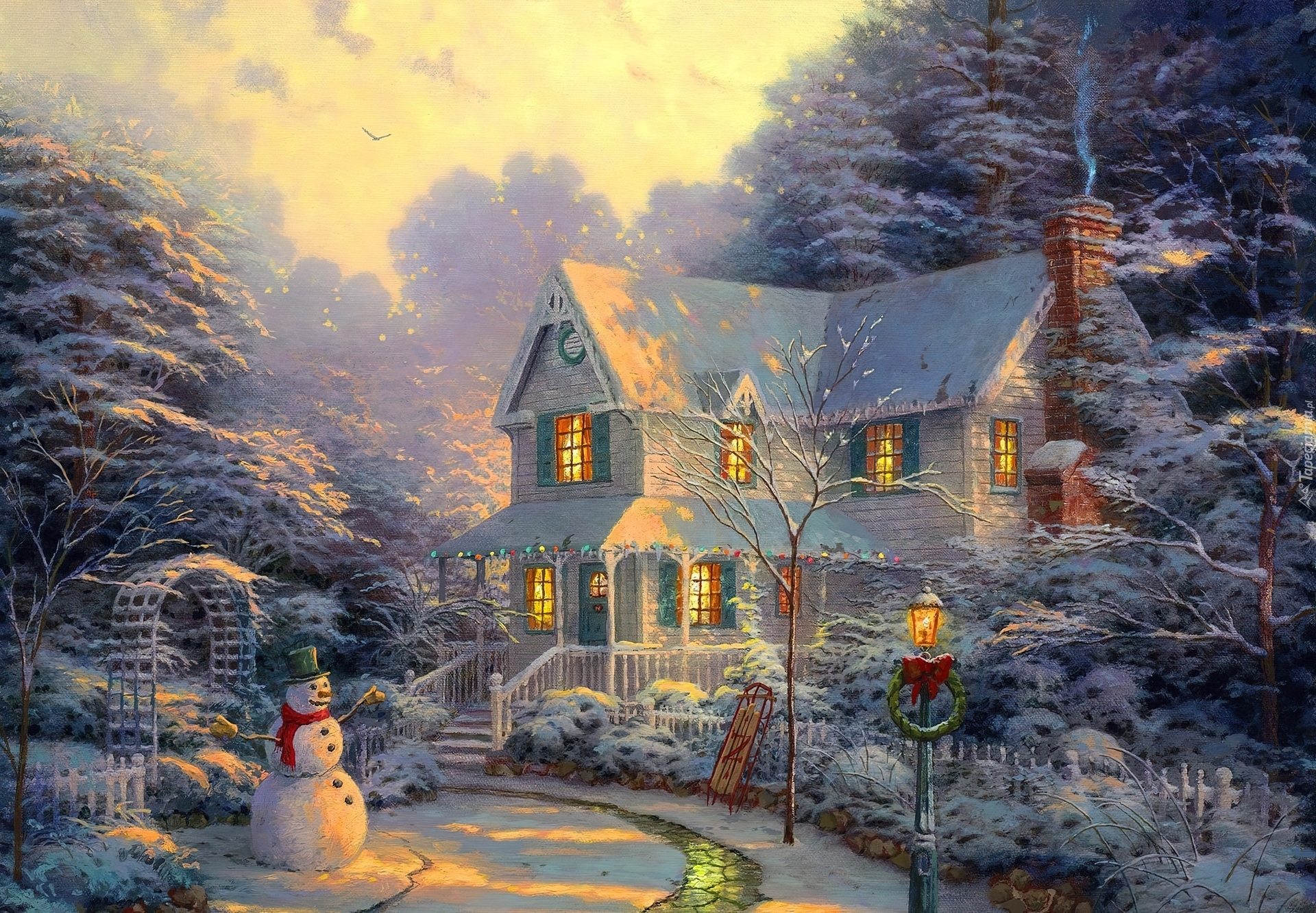 Edytor tapety: Zima, Bałwan, Dom, Boże, Narodzenie, Obraz