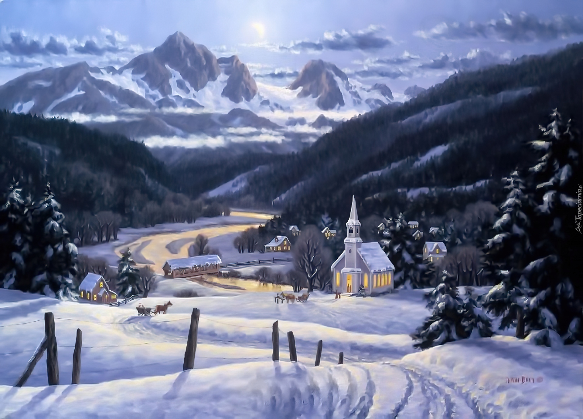Edytor tapety: Krajobraz, Góry, Zima, Obraz