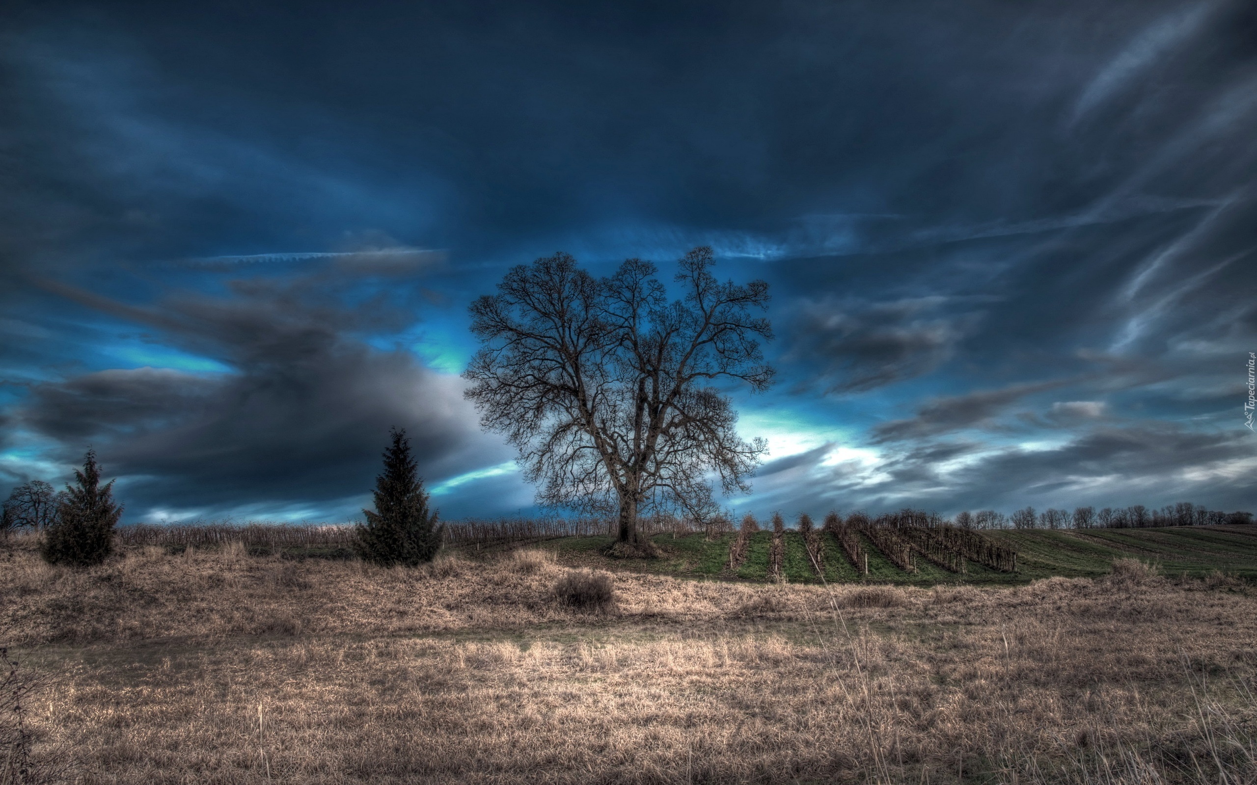Edytor tapety: Niebo, Chmury, Drzewa, Pola