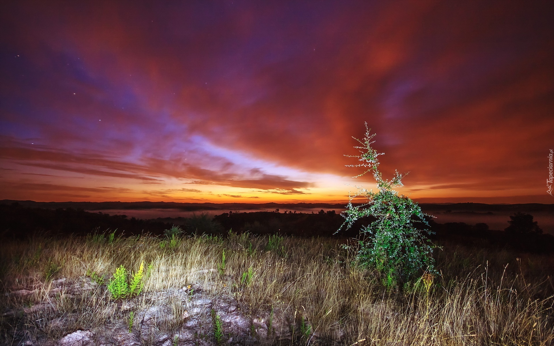 Edytor tapety: Zachód, Słońca, Drzewko, Trawa