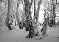 Edytor tapety: Zima, Ośnieżone, Drzewa, Przebijające Światło