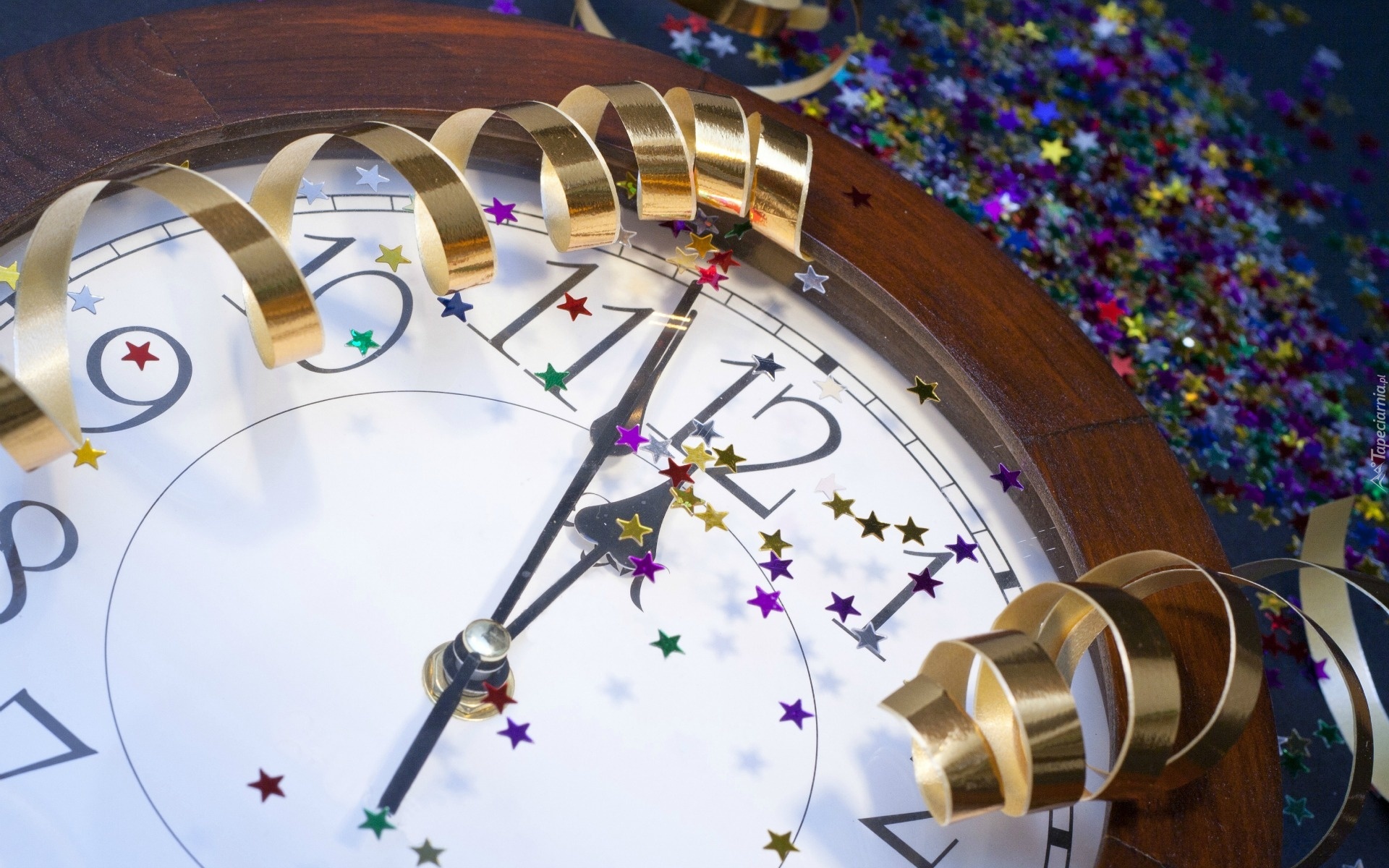 Edytor tapety: Sylwester, Zegar, Serpentyny, Gwiazdki