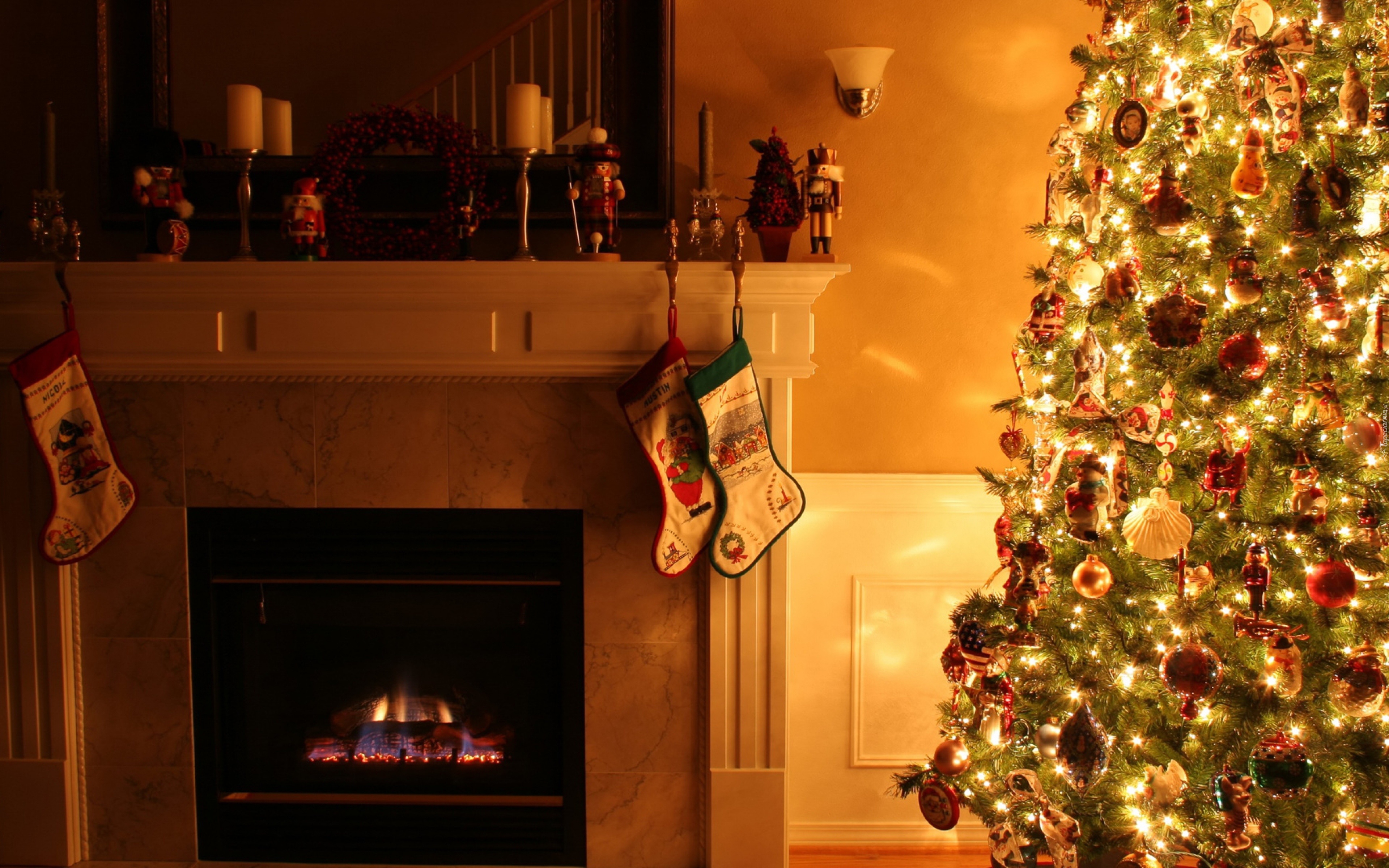 Edytor tapety: Kominek, Piękna, Choinka, Boże Narodzenie