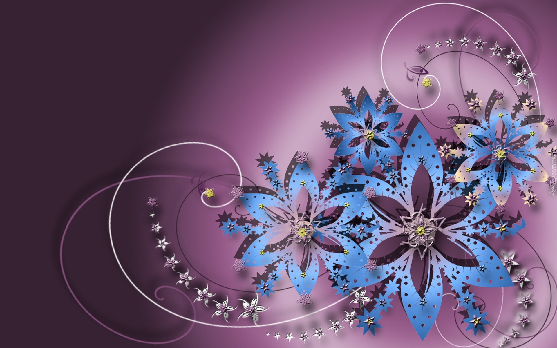 Edytor tapety: Niebieskie, Kwiaty, Grafika