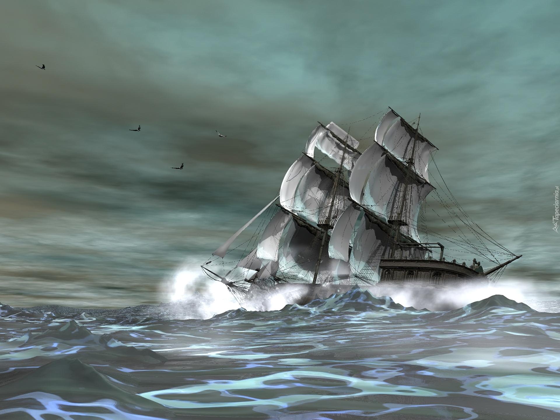Edytor tapety: Żaglowiec, Morze, Fale