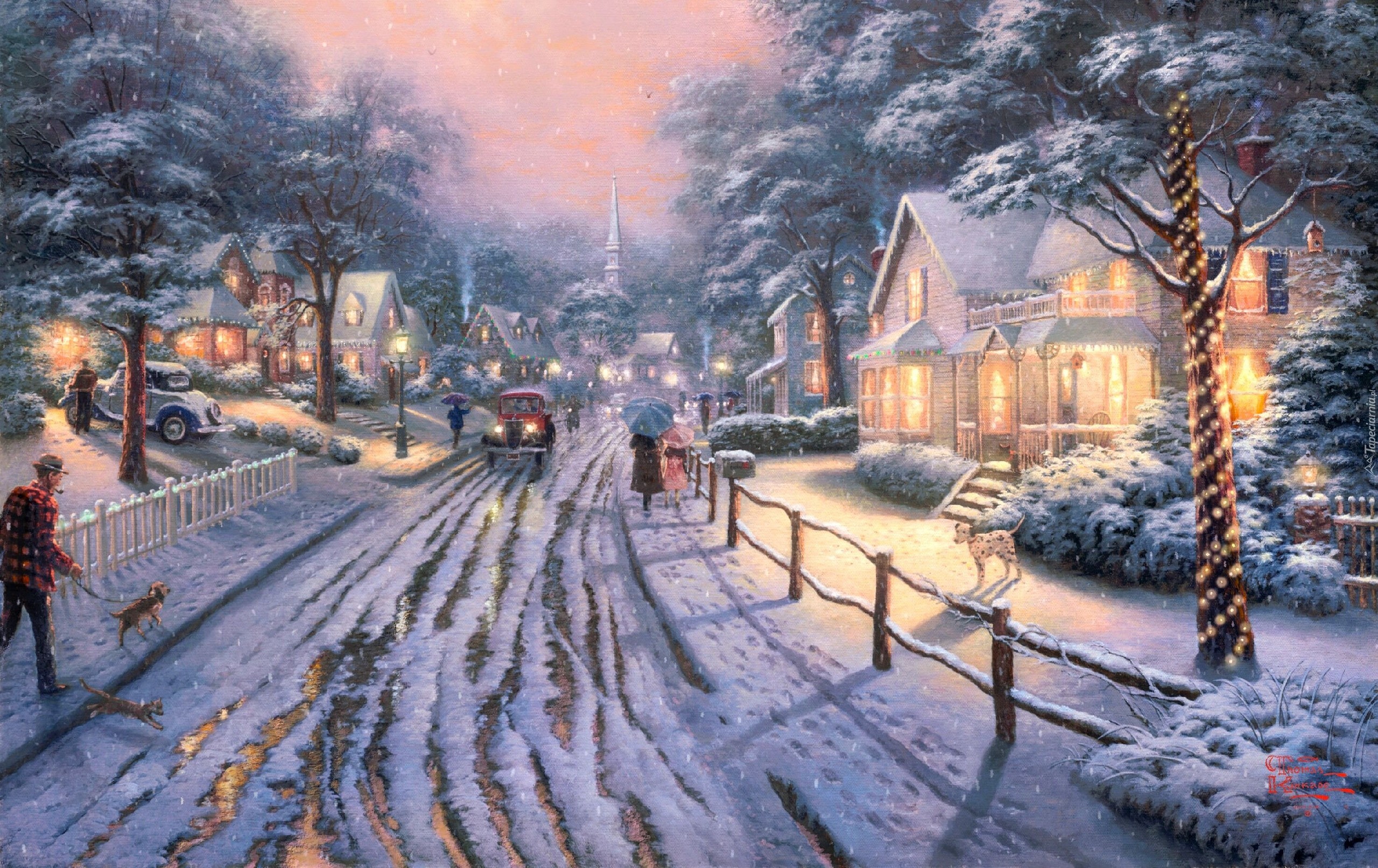 Edytor tapety: Zima, Ulica, Miasteczko, Malarstwo, Thomas Kinkade