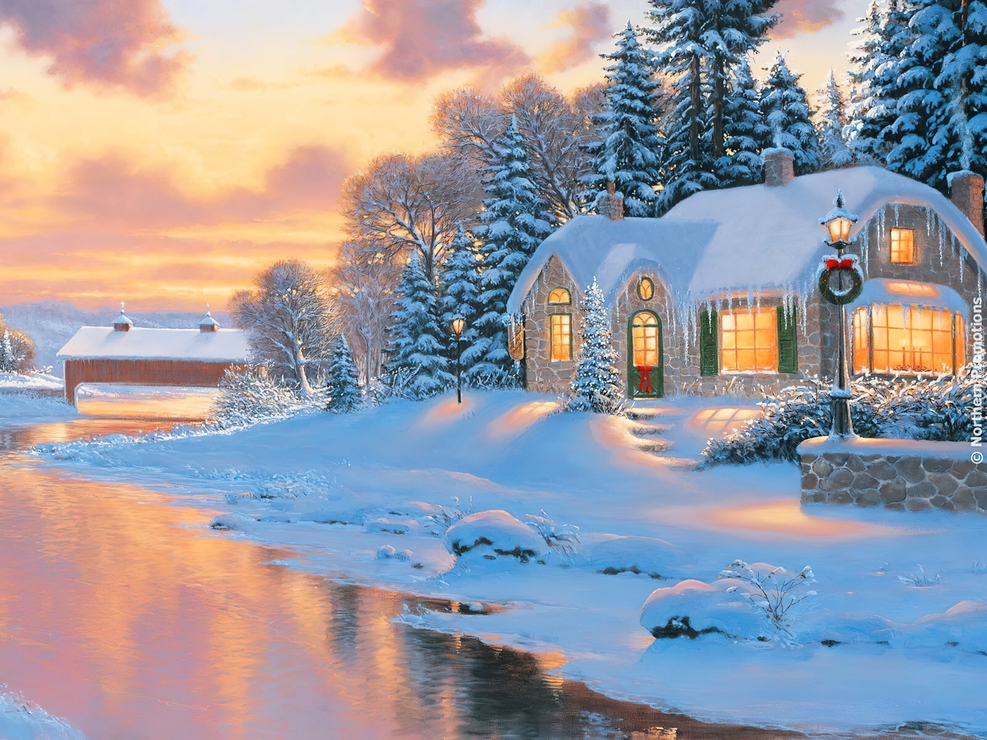 Edytor tapety: Dom, Nad, Rzeką, Zima