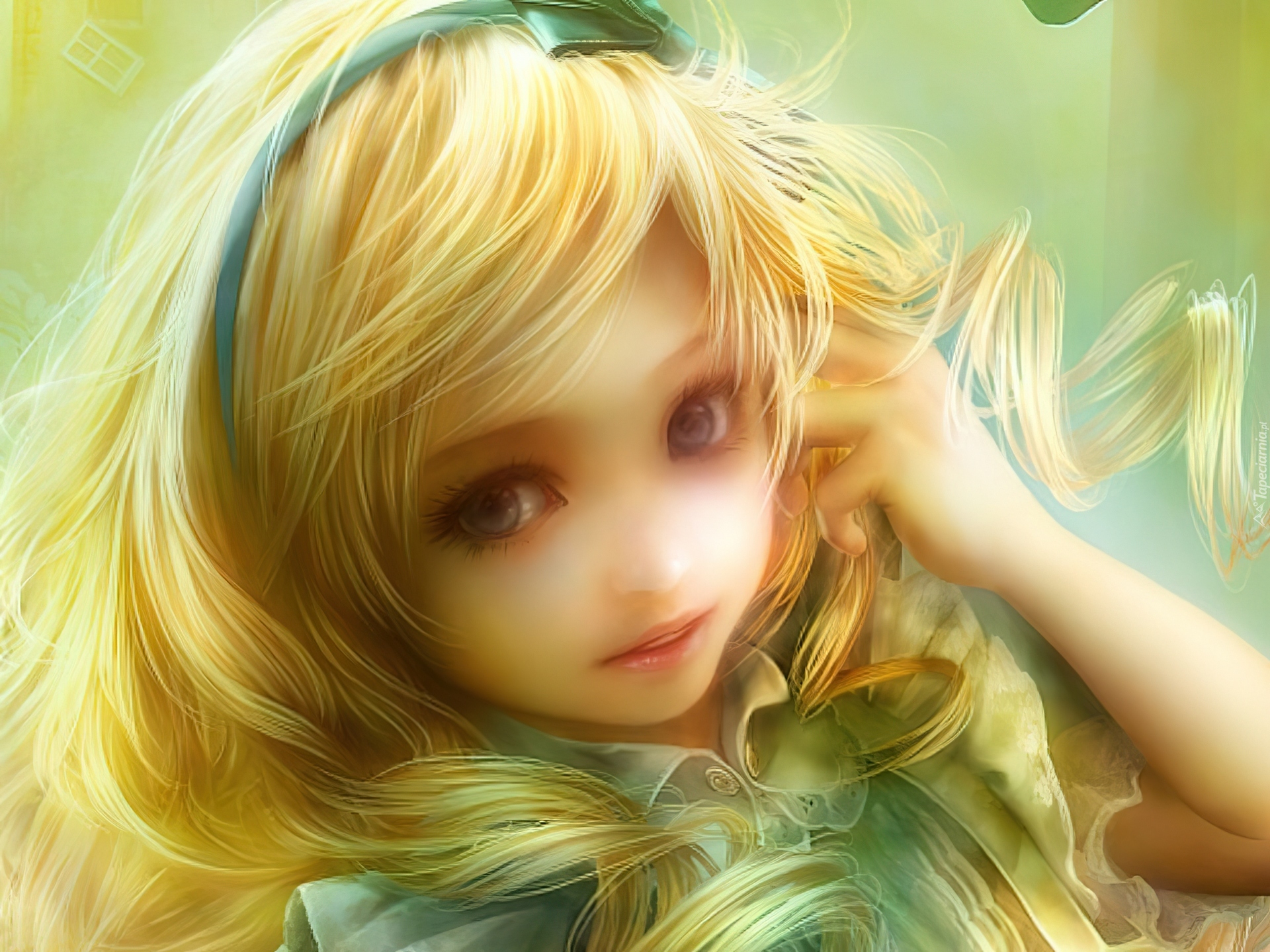 Edytor tapety: Rysunek, Dziewczynka, Blondynka, Opaska