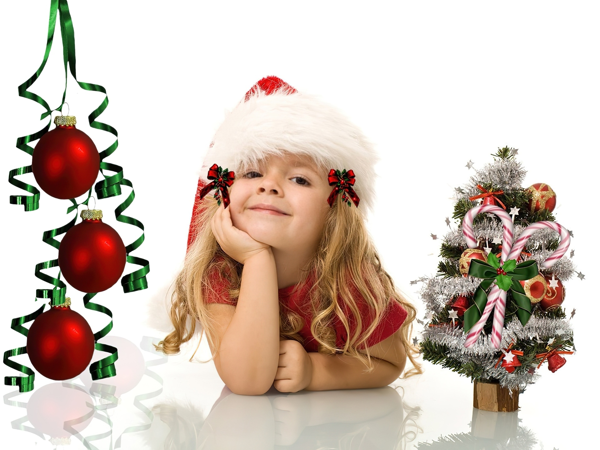 Edytor tapety: Mała, Dziewczynka, Bombki, Choinka, Święta