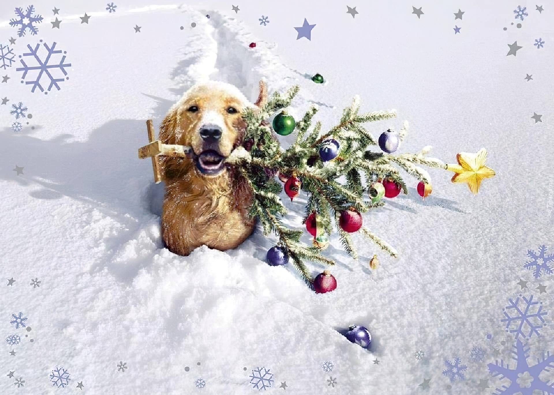 Edytor tapety: Pies, Choinka, Święta