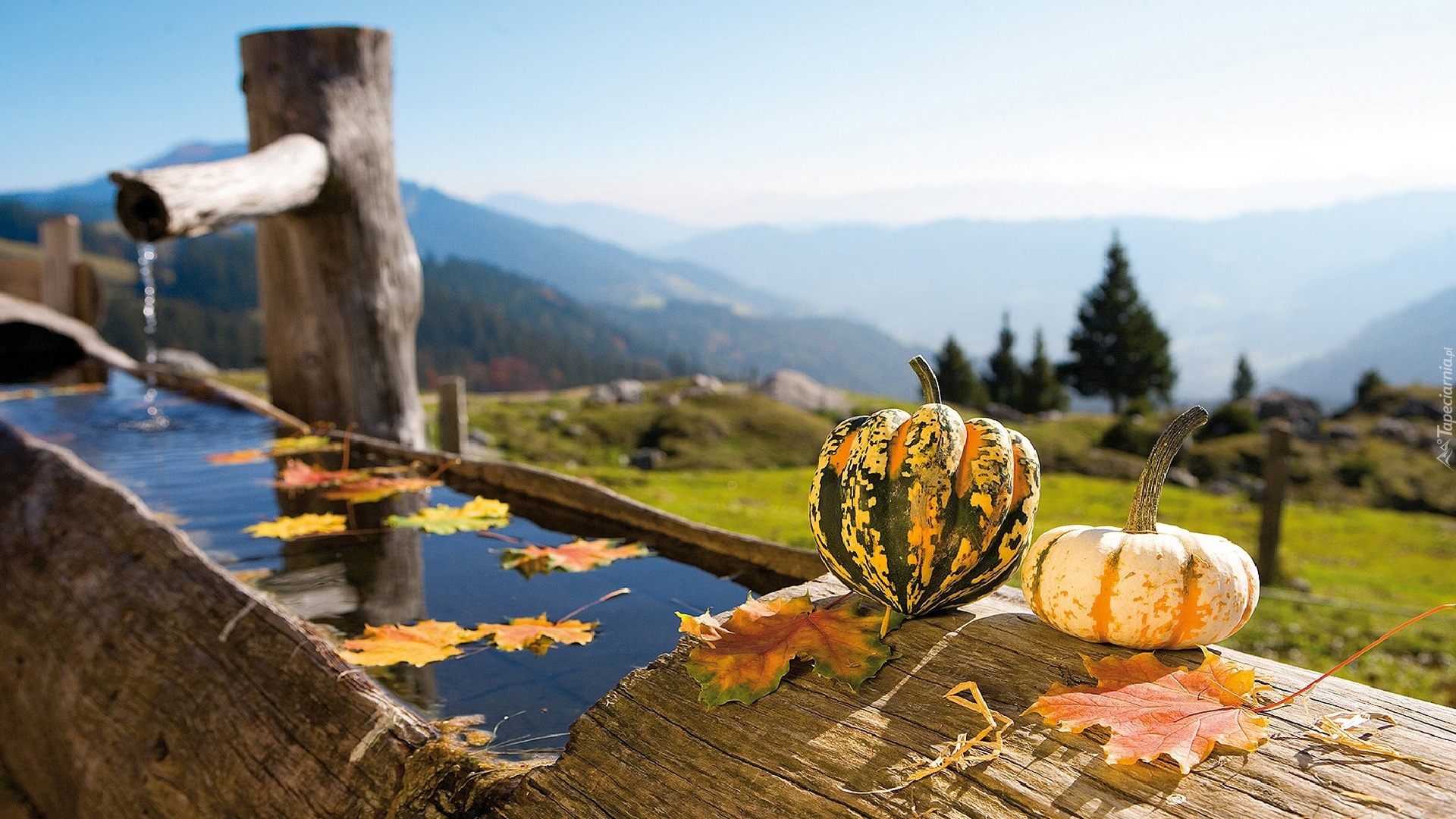 Edytor tapety: Koryto, Woda, Liście, Dynie